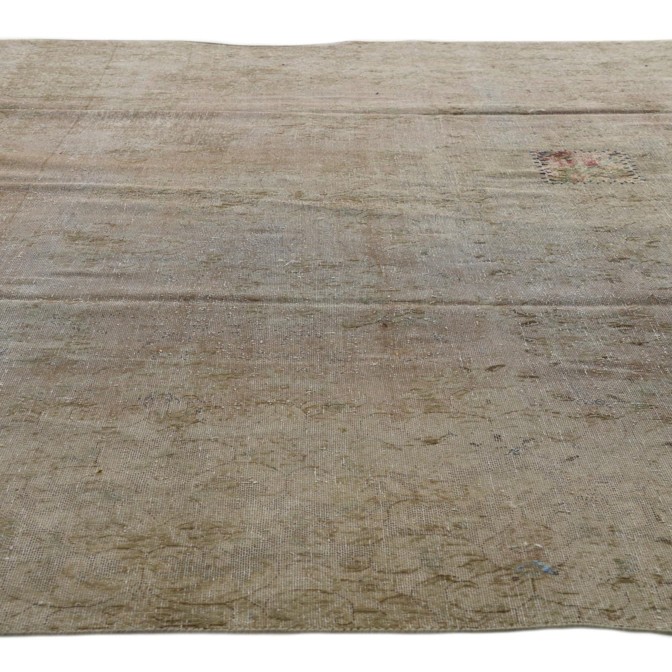 This Persian Ultra Vintage rug is an antique Persian Rug that has been washed, over-dyed, and then shaved down to a low pile. Look at the detail pictures to fully appreciate the uniqueness of this piece.