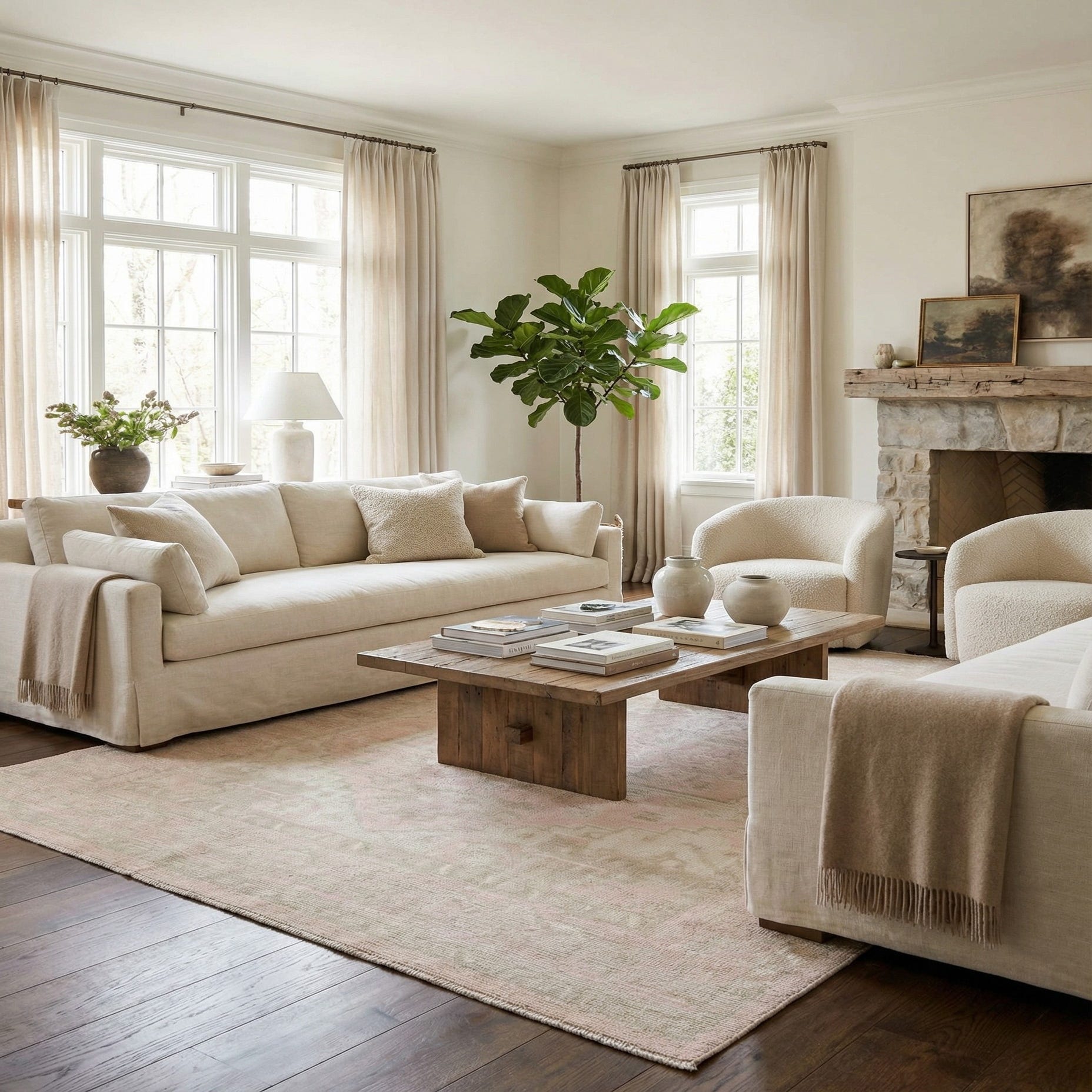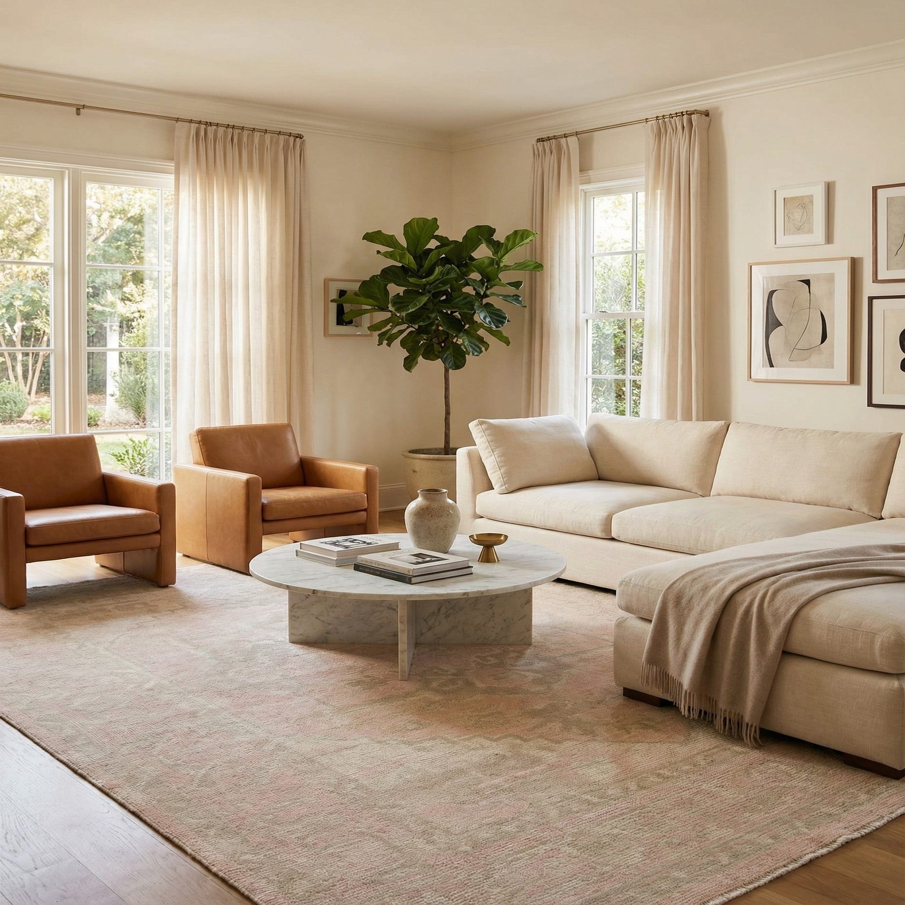 Primary color is Light Brown. Colors in this rug include: Light Brown, Ivory, Pink, Beige.