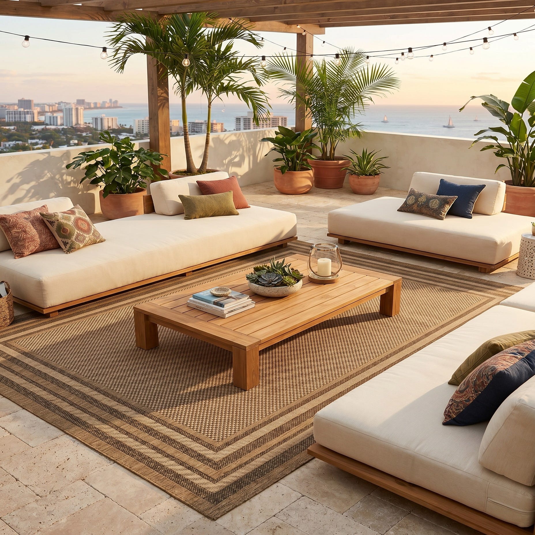 9' x 12' Easy-Clean Border Indoor / Outdoor Rug
