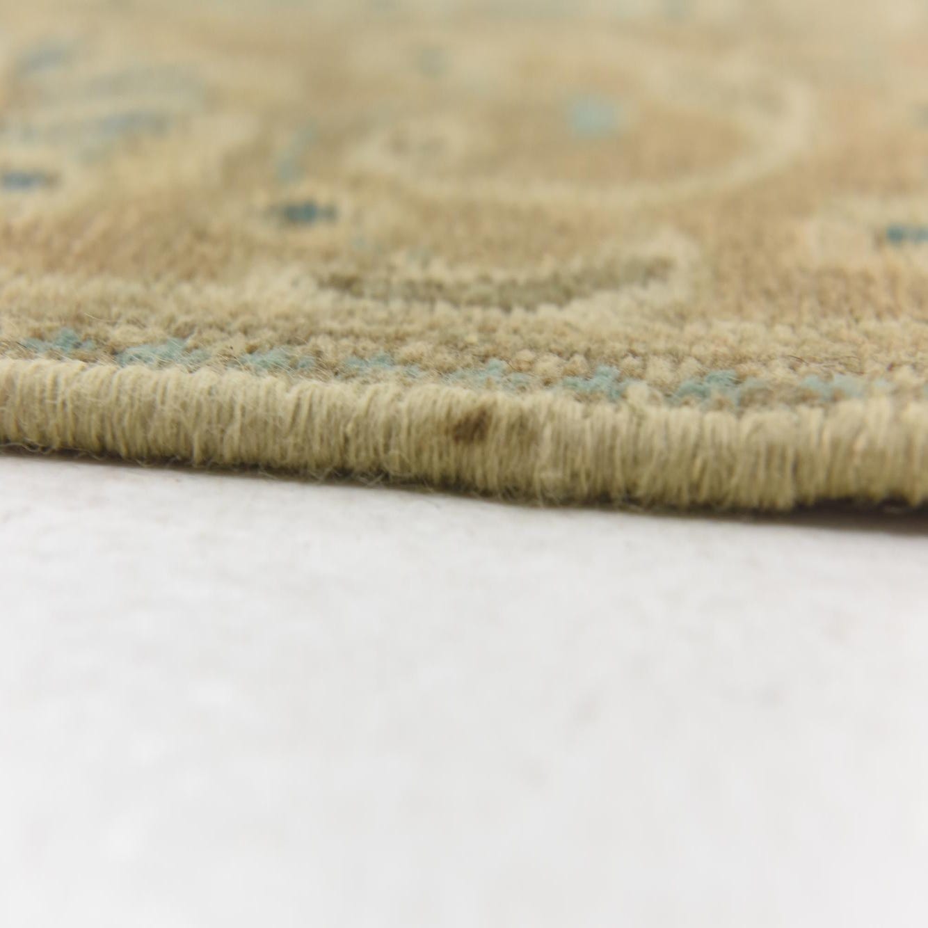 Primary color is Light Brown. Colors in this rug include: Light Brown, Green, Ivory, Light Blue.