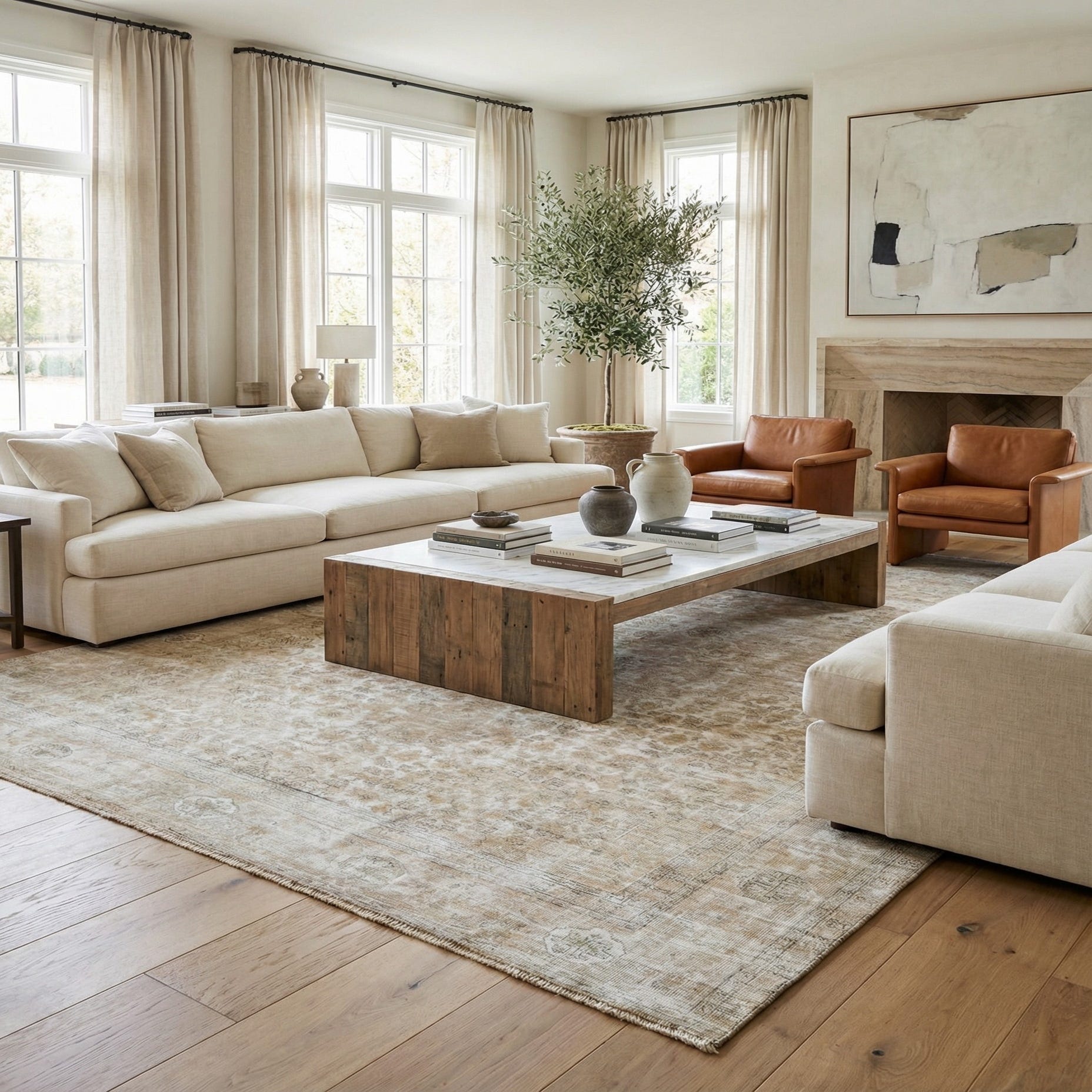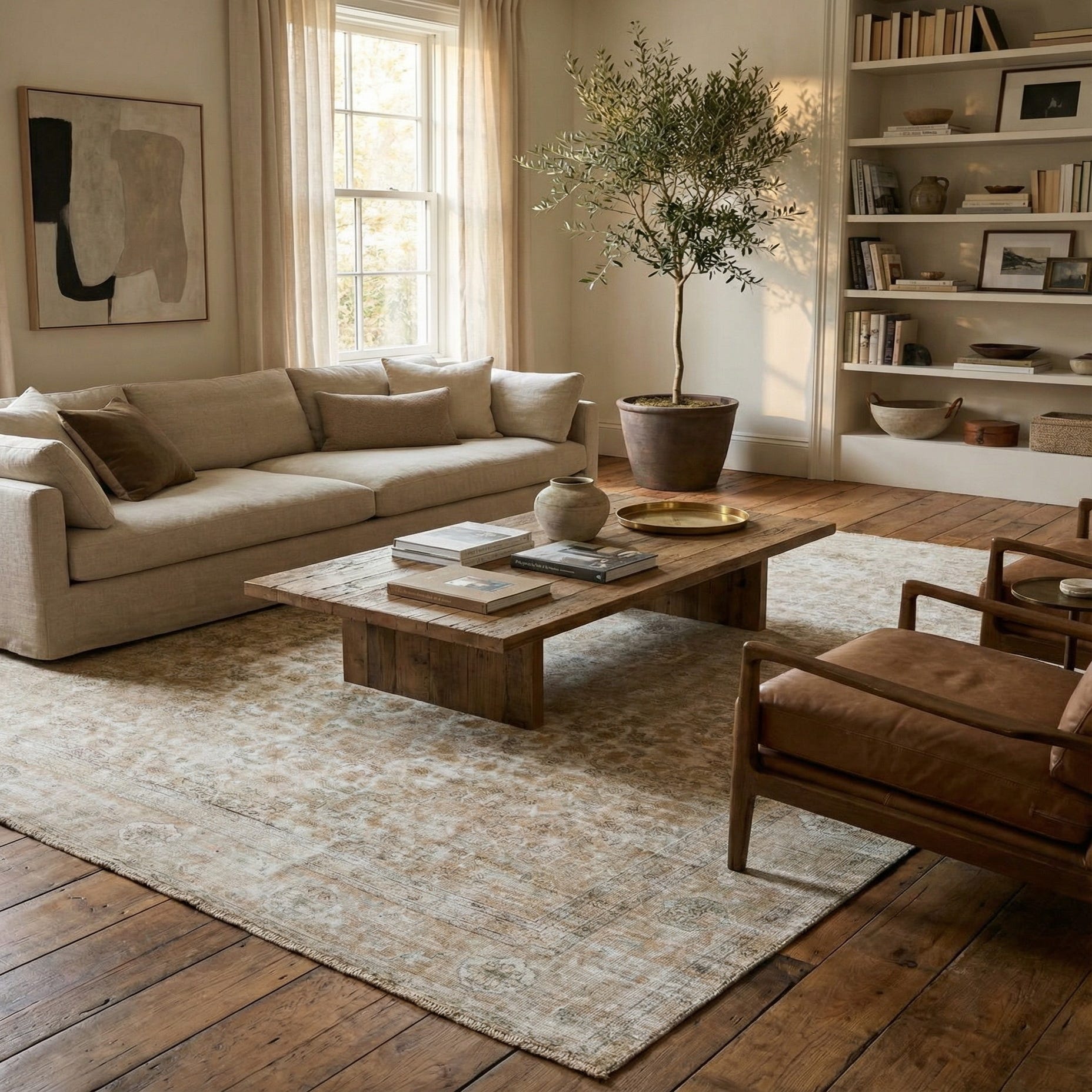 Primary color is Light Brown. Colors in this rug include: Light Brown, Brown, Ivory, Olive.