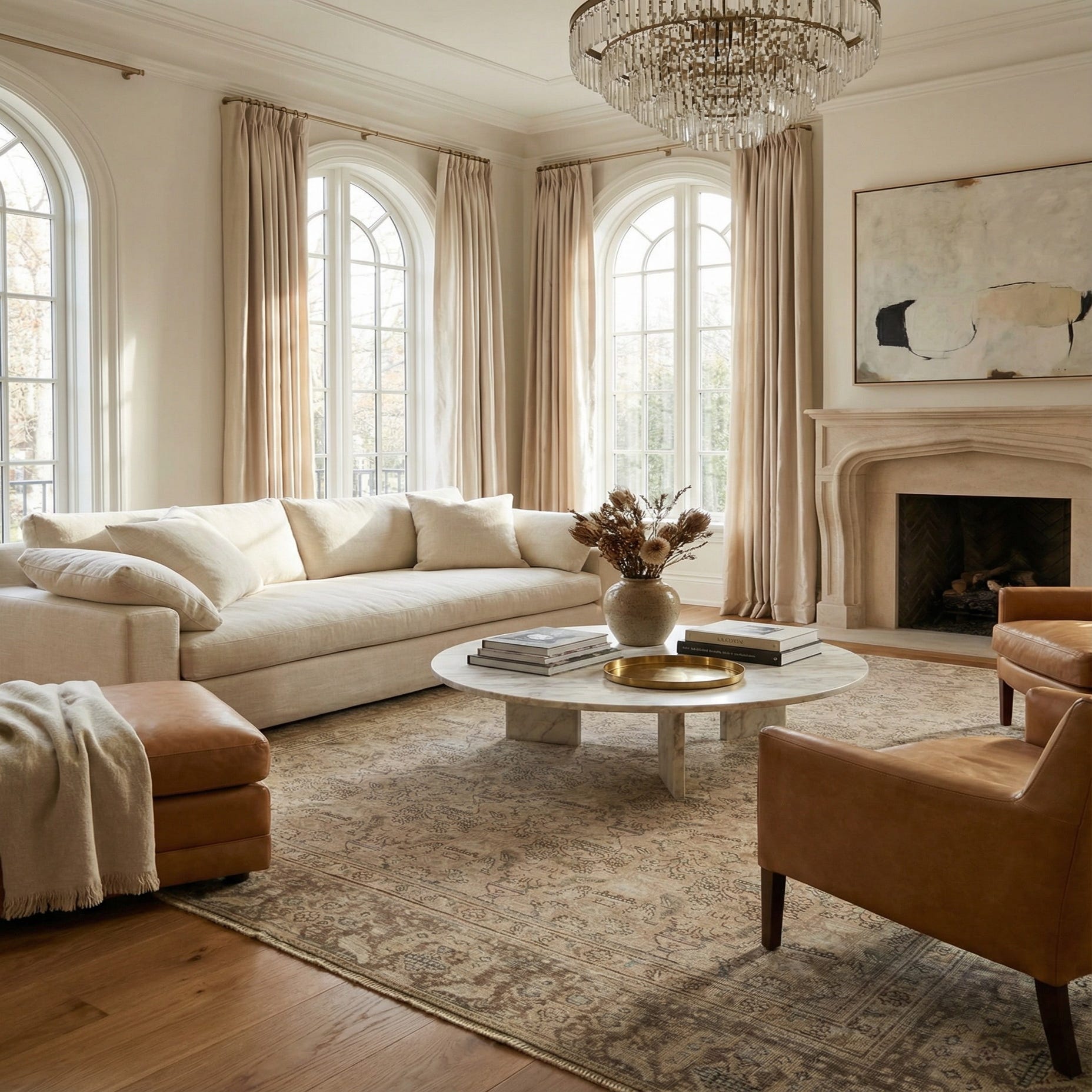 Primary color is Light Brown. Colors in this rug include: Light Brown, Brown, Olive, Ivory.