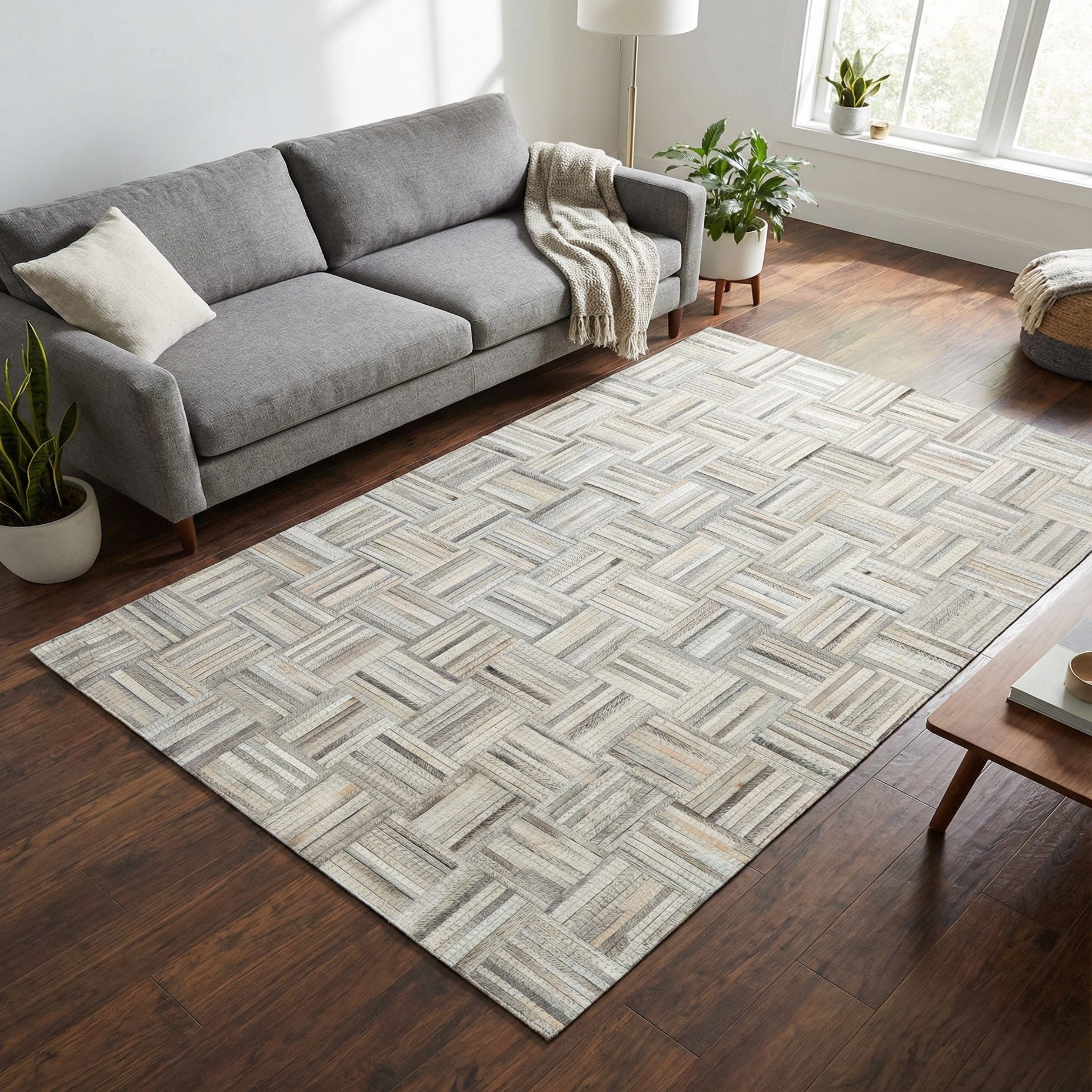 4' 1 x 6' 1 Cowhide Leather Rug