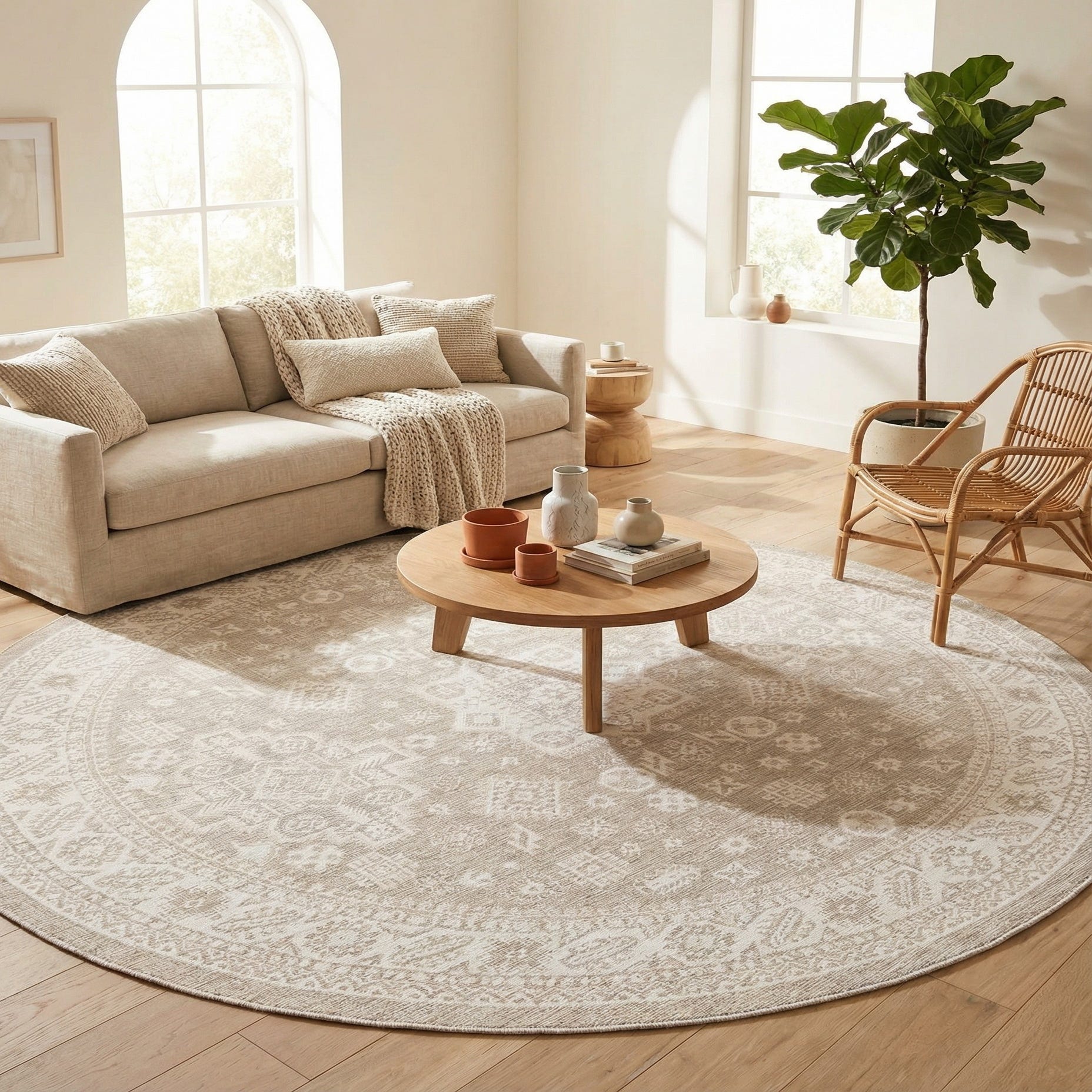 Primary image 10' x 10'  Washable Aztec Indoor / Outdoor Round Rug