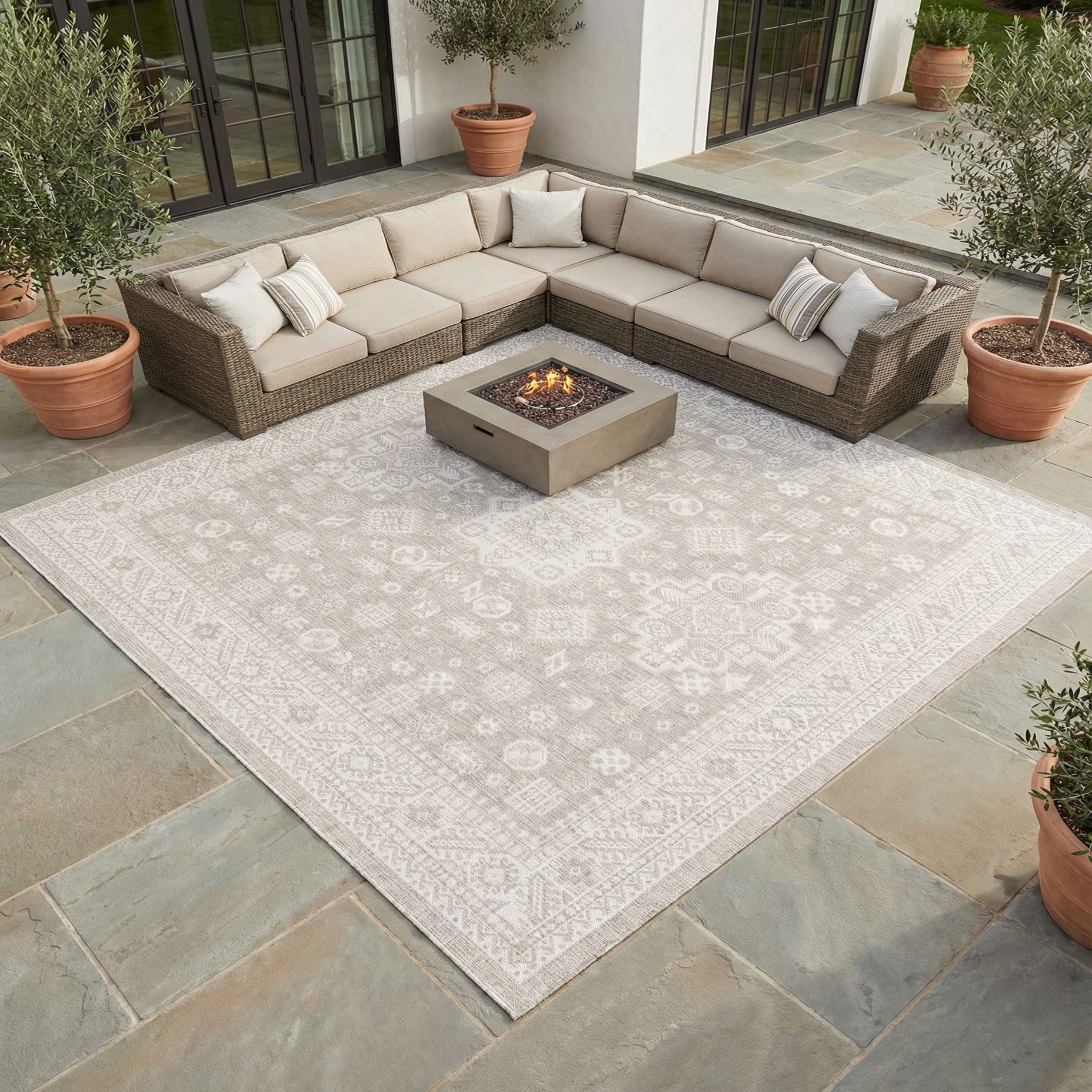 10' x 10' Washable Aztec Indoor / Outdoor Square Rug