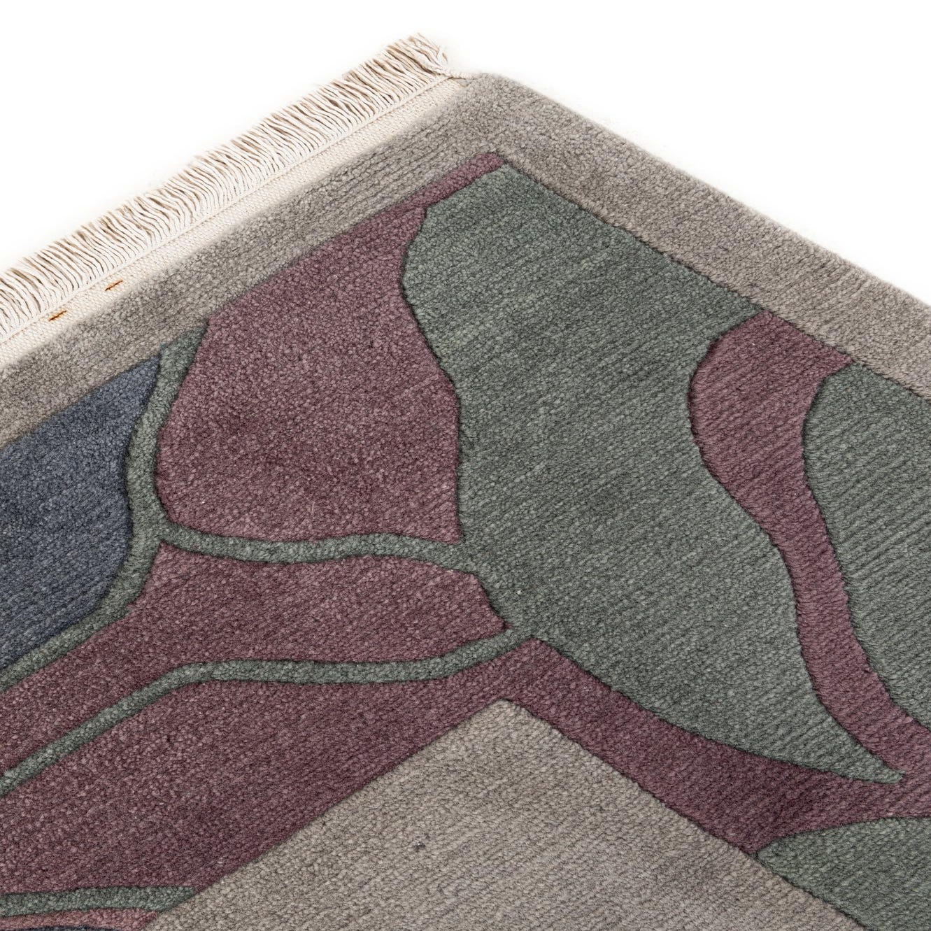 Primary color is Light Gray. Colors in this rug include: Light Gray, Green, Navy Blue, Purple, Violet.