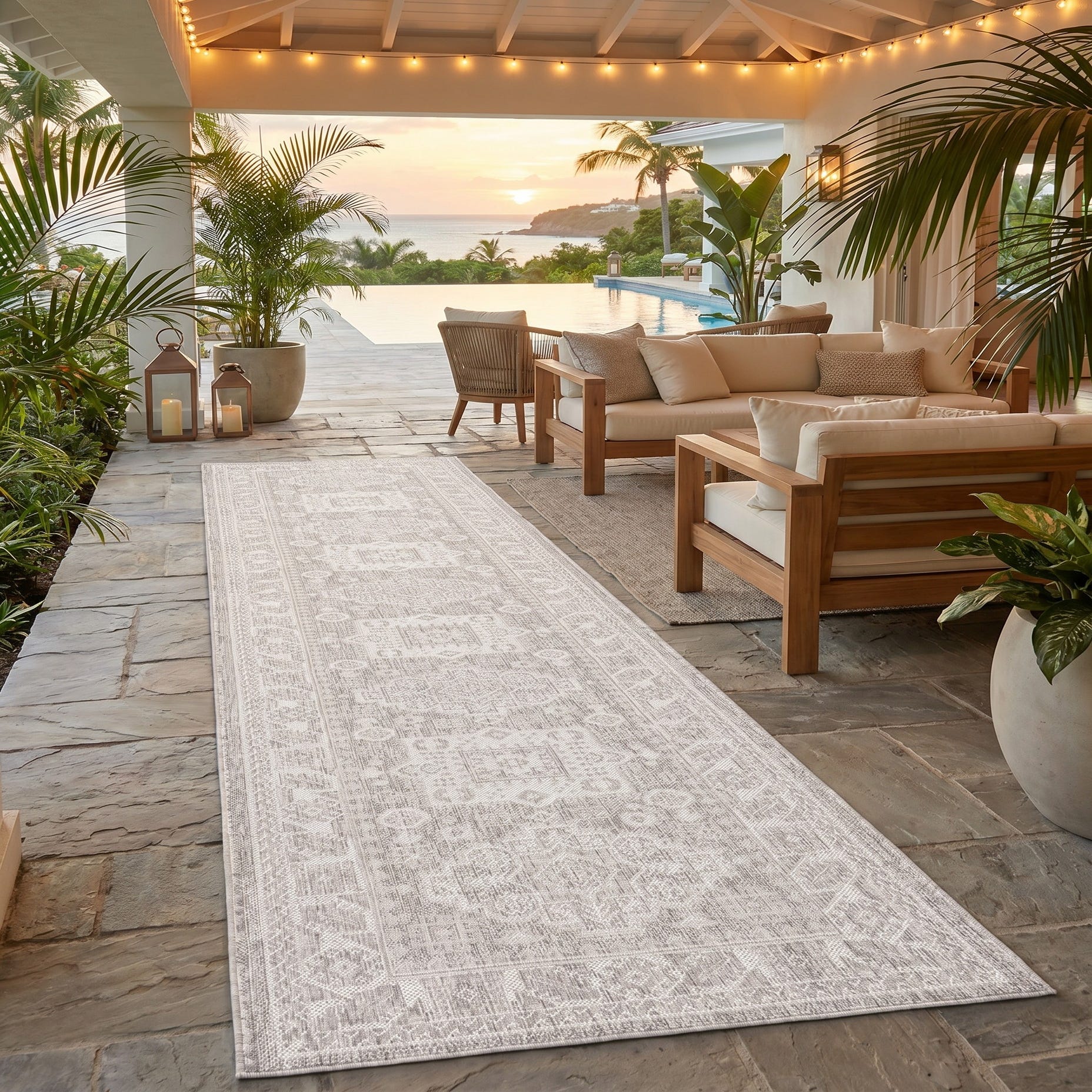 2' 7 x 12' Easy-Clean Aztec Indoor / Outdoor Runner Rug