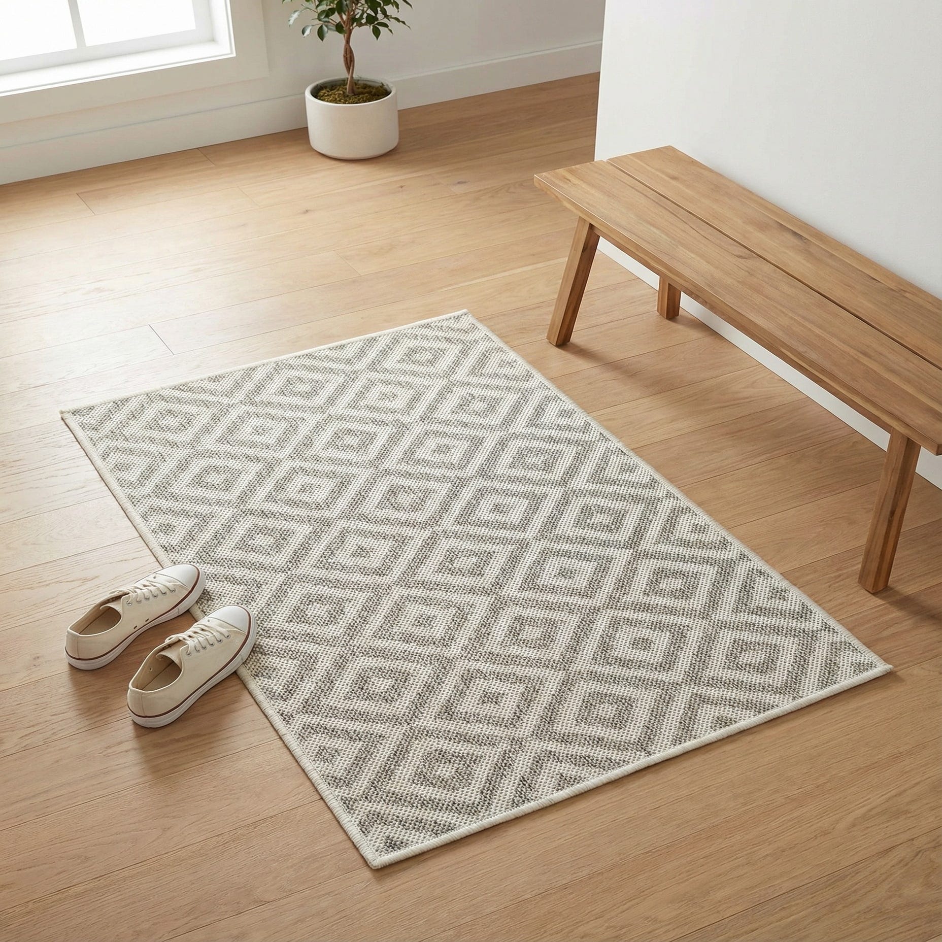 Primary color is Light Gray. Colors in this rug include: Light Gray, Ivory.