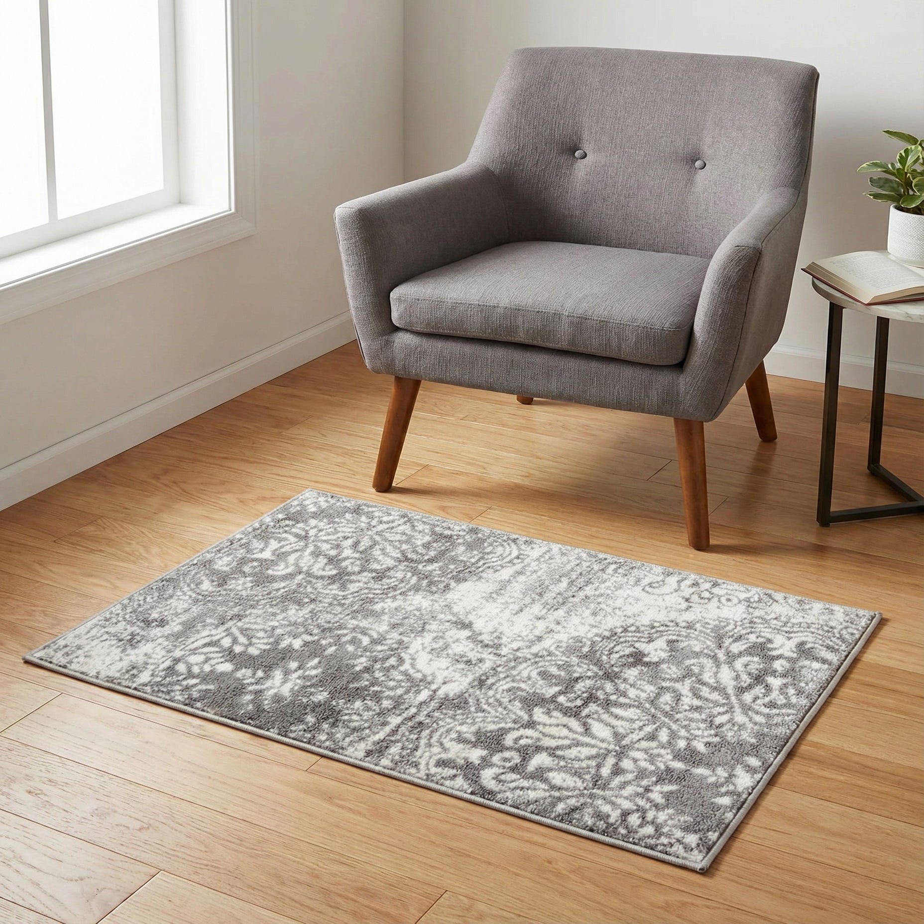 Primary color is Light Gray. Colors in this rug include: Light Gray, Ivory.