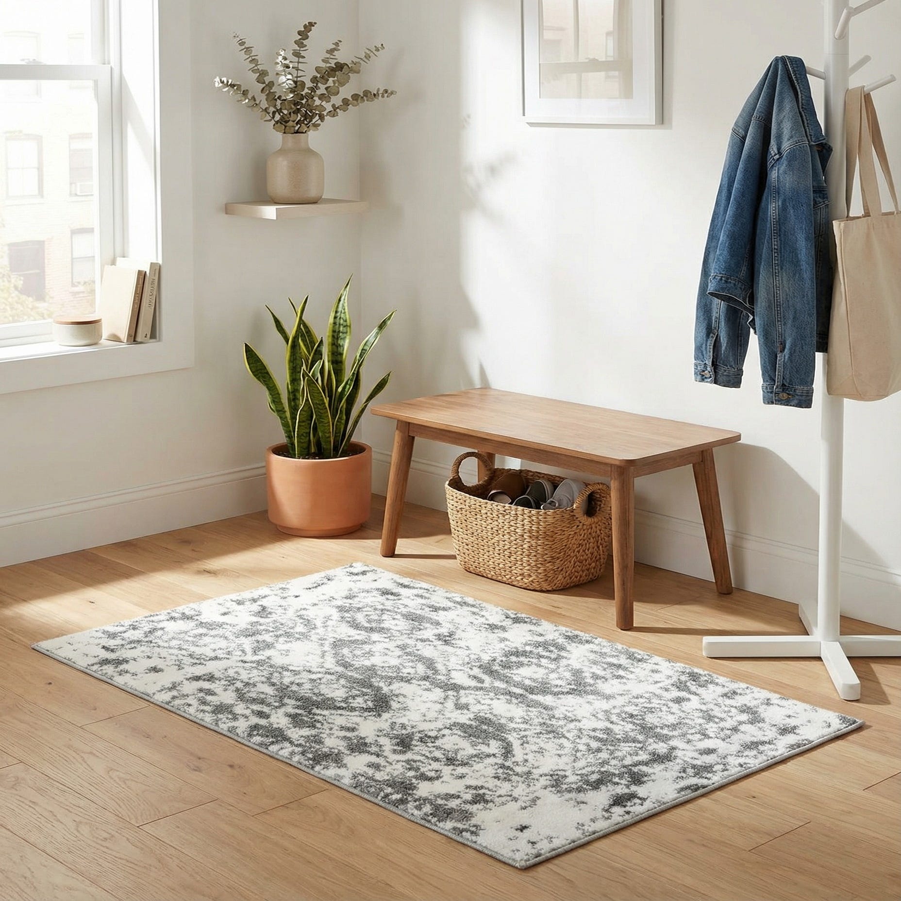 Primary color is Light Gray. Colors in this rug include: Light Gray, Ivory.