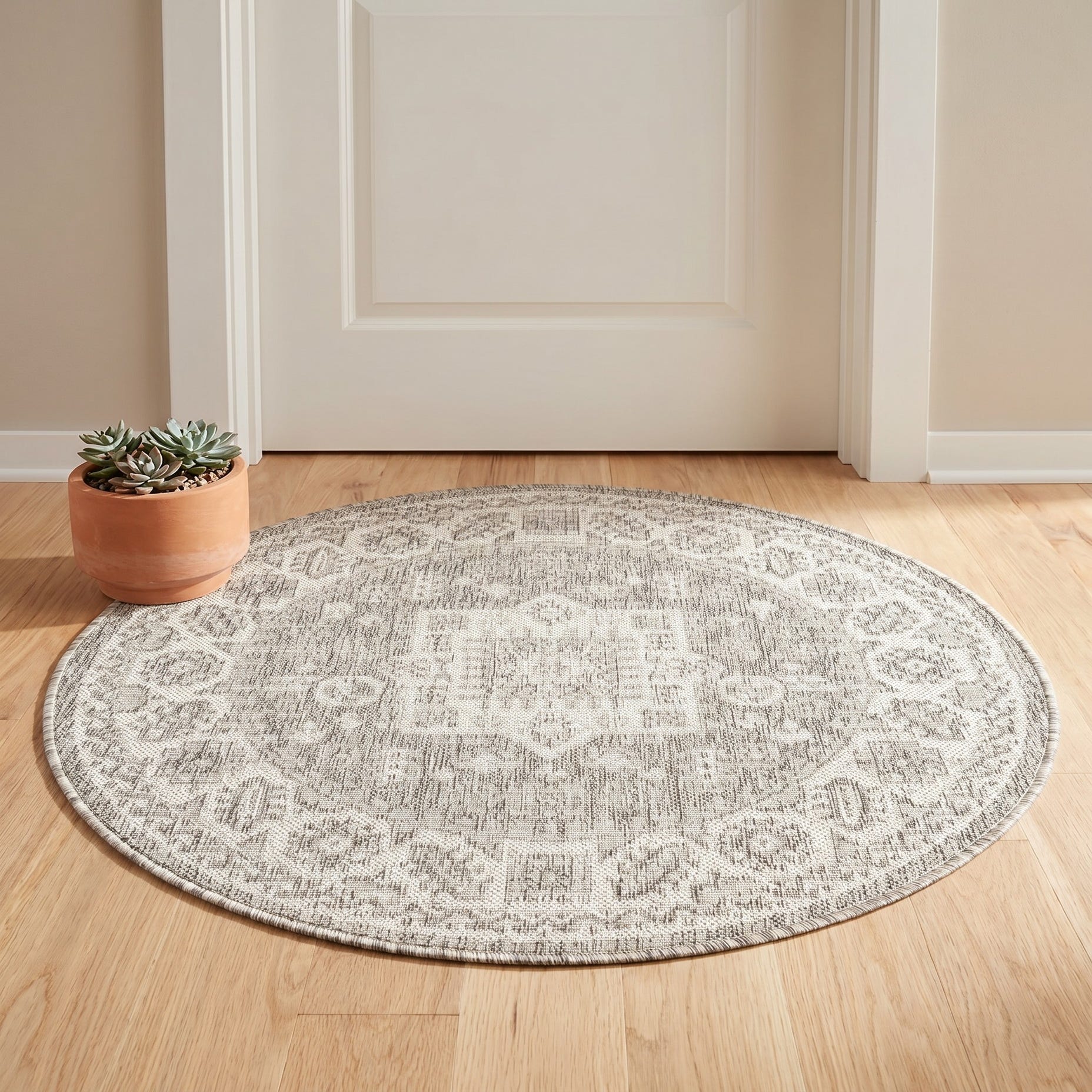 3' x 3' Easy-Clean Aztec Indoor / Outdoor Round Rug