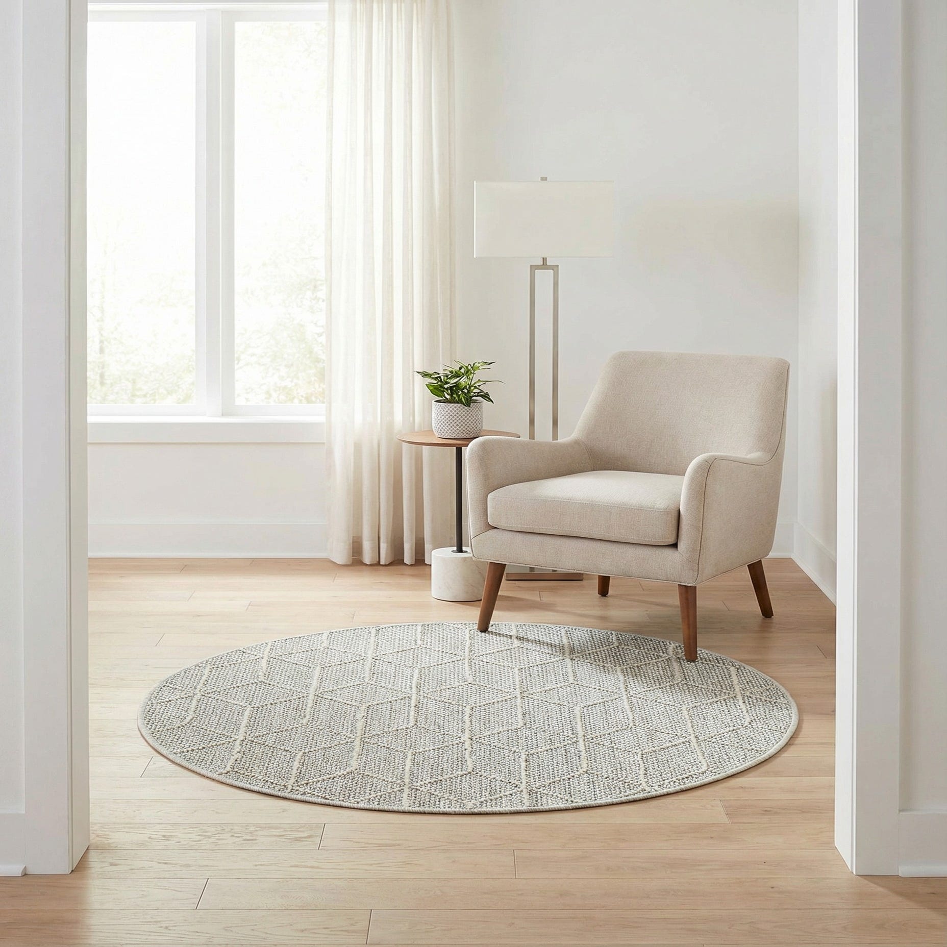 3' 1 x 3' 1 Washable Trellis Indoor / Outdoor Round Rug