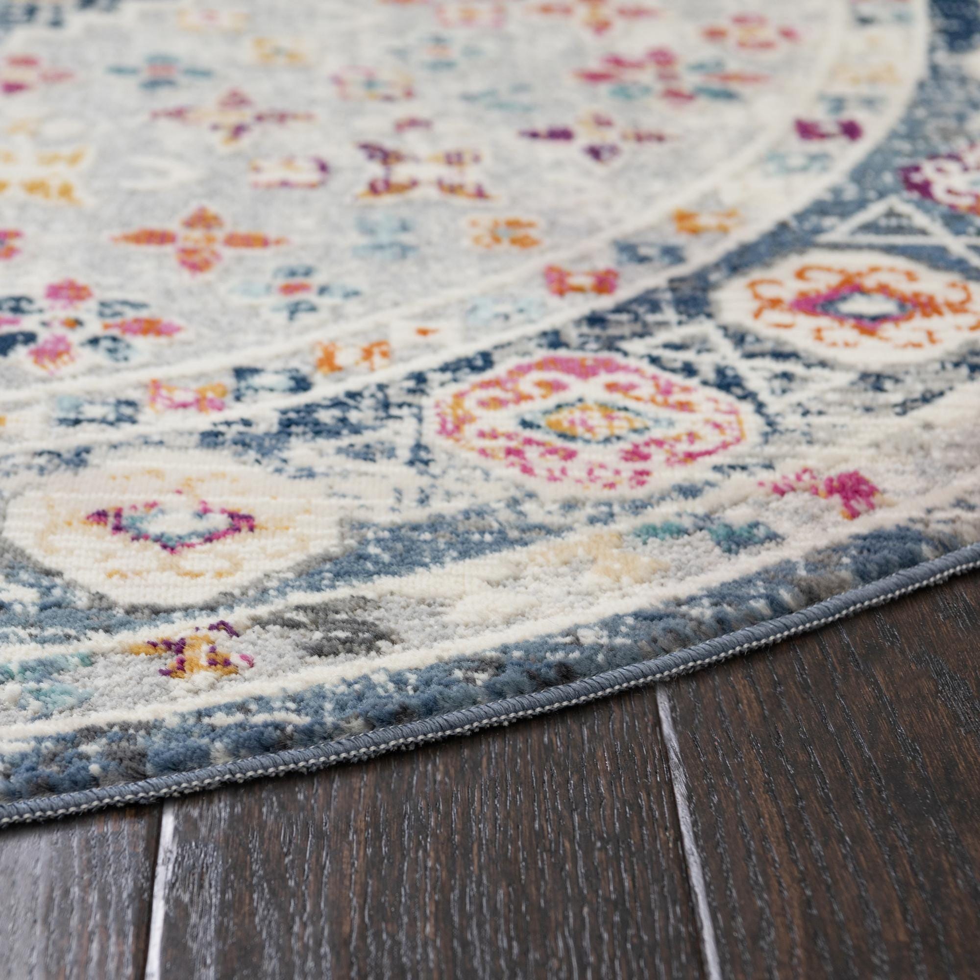 Primary color is Light Gray. Colors in this rug include: Light Gray, Blue, Gold, Gray, Ivory, Navy Blue, Light Blue, Yellow, Pink.