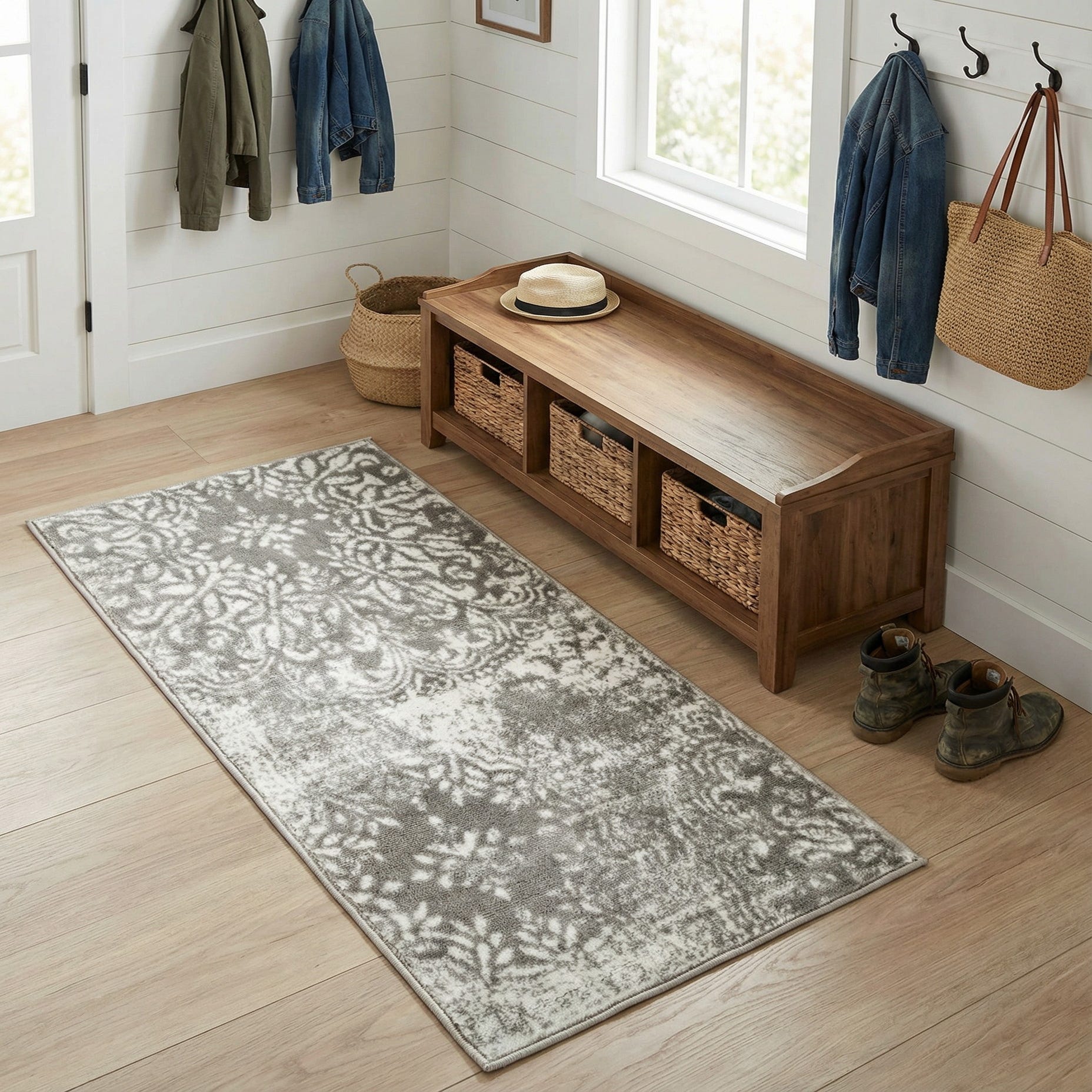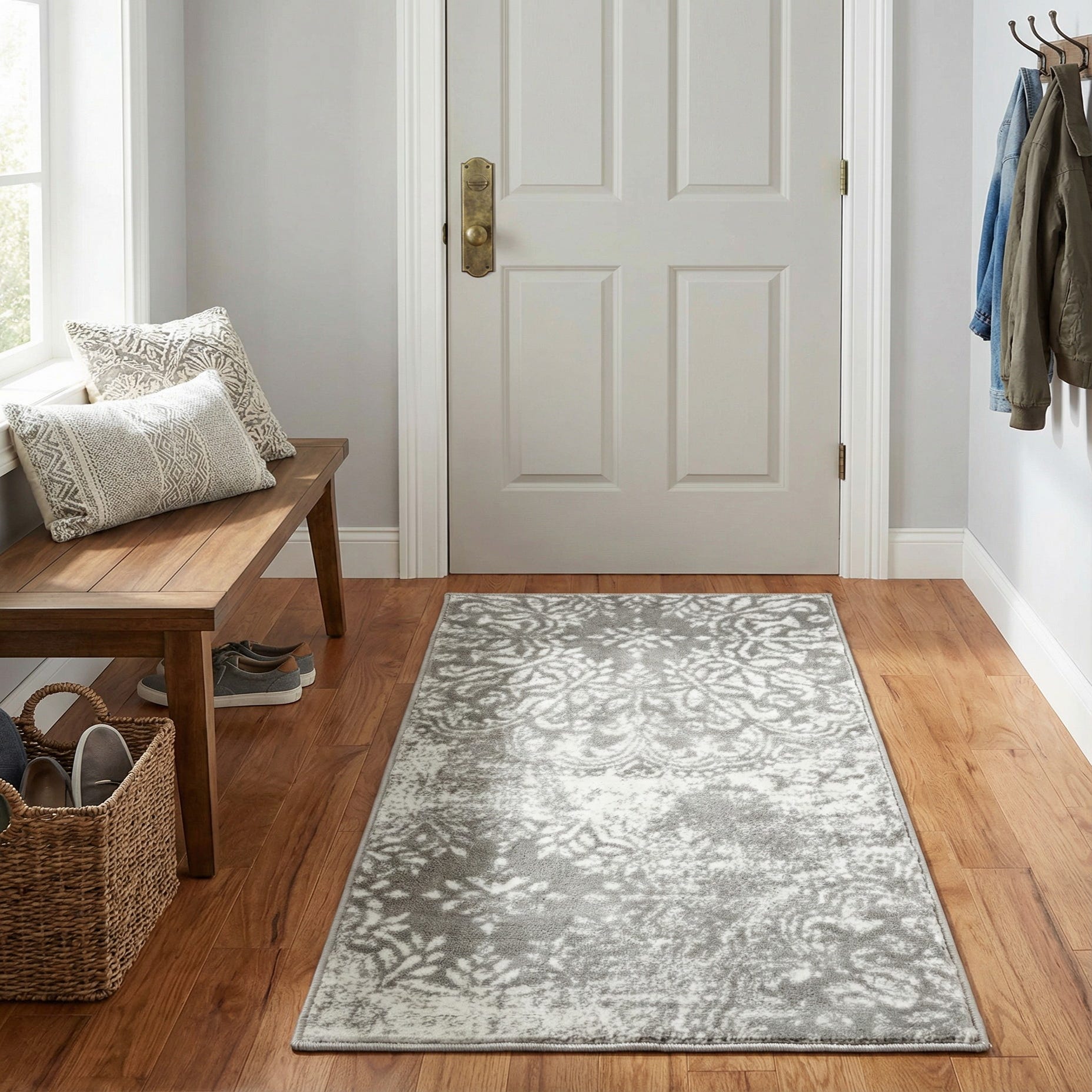 Primary color is Light Gray. Colors in this rug include: Light Gray, Ivory.