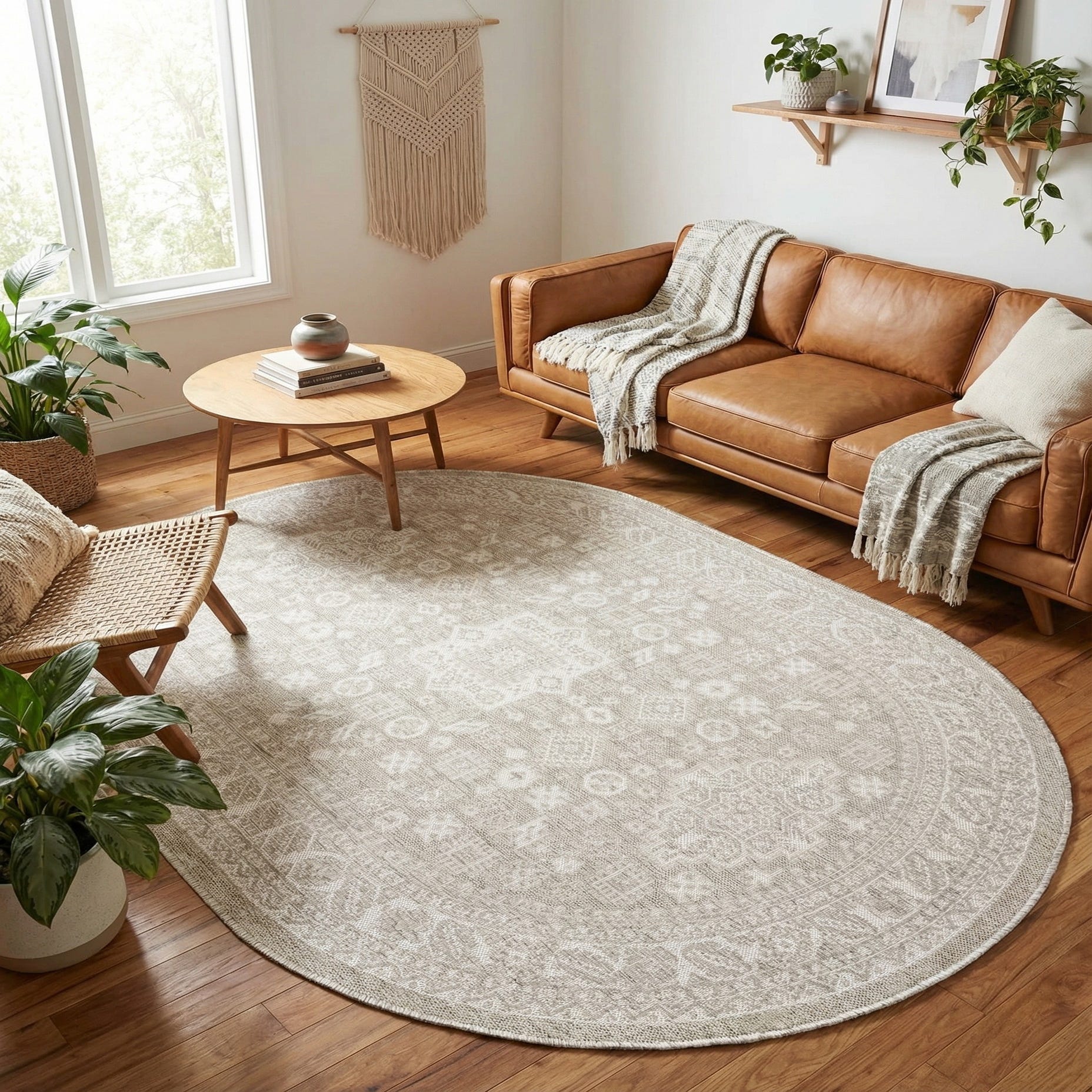 Primary image 5' 3 x 8'  Washable Aztec Indoor / Outdoor Oval Rug