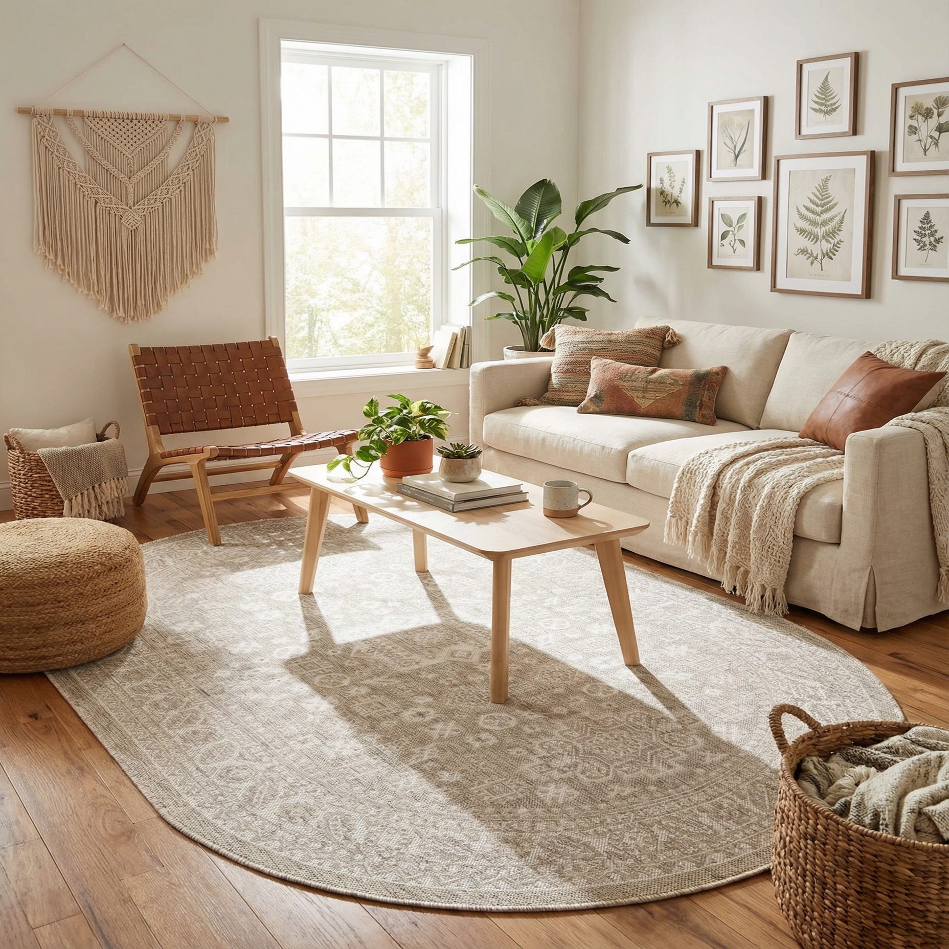 5' 3 x 8' Washable Aztec Indoor / Outdoor Oval Rug