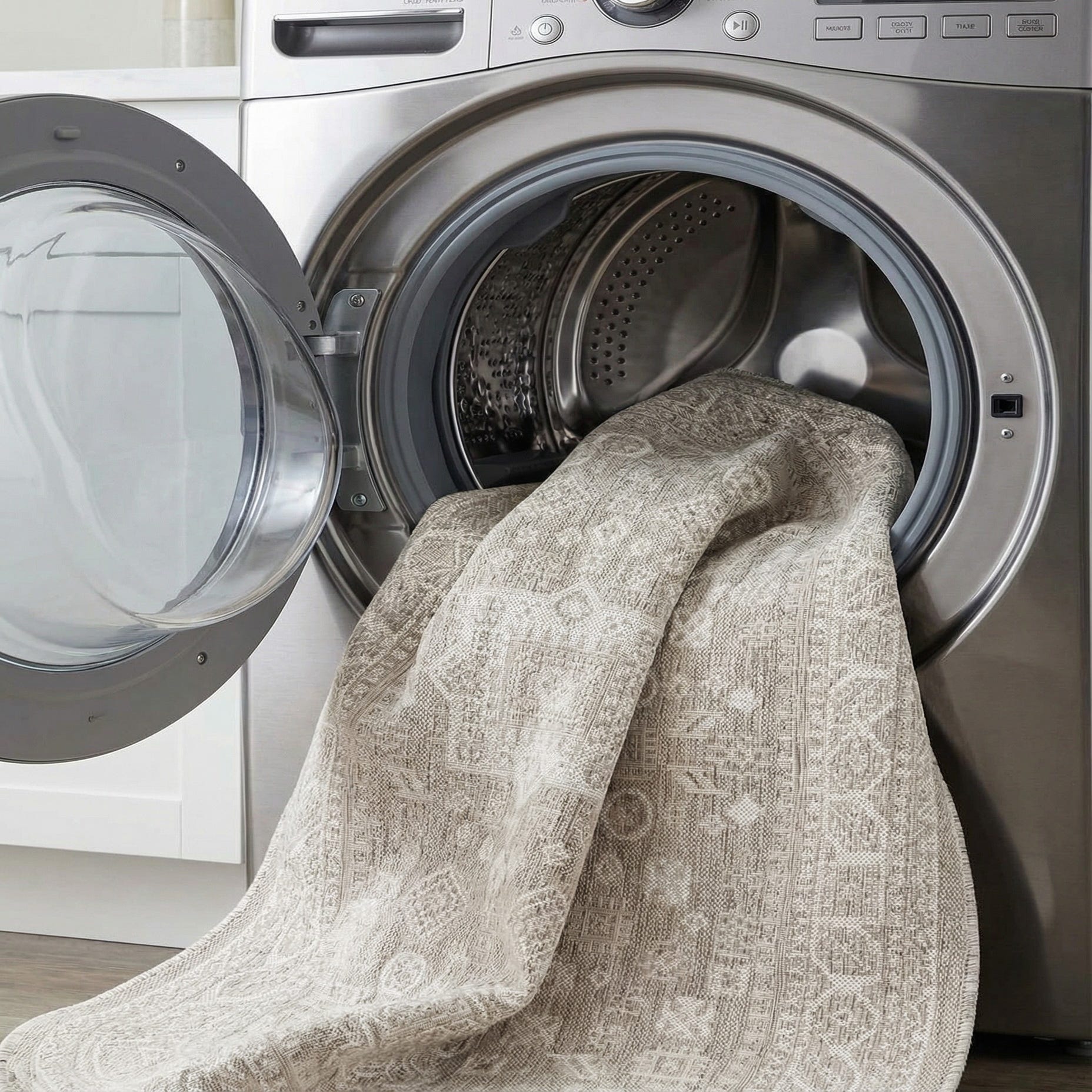 Detail image of 5' 3 x 8'  Washable Aztec Indoor / Outdoor Oval Rug
