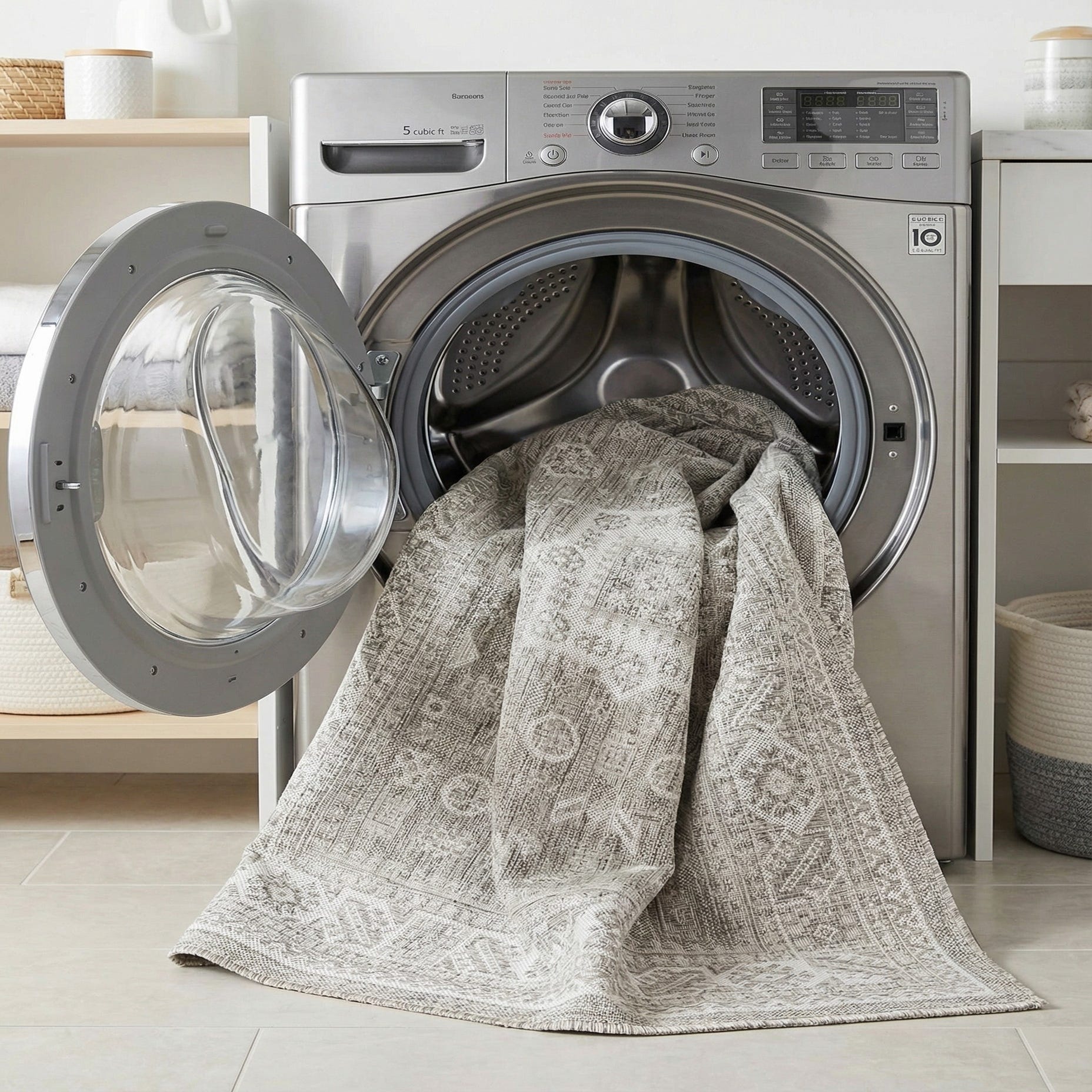 Primary color is Light Gray. Colors in this rug include: Light Gray, Ivory.