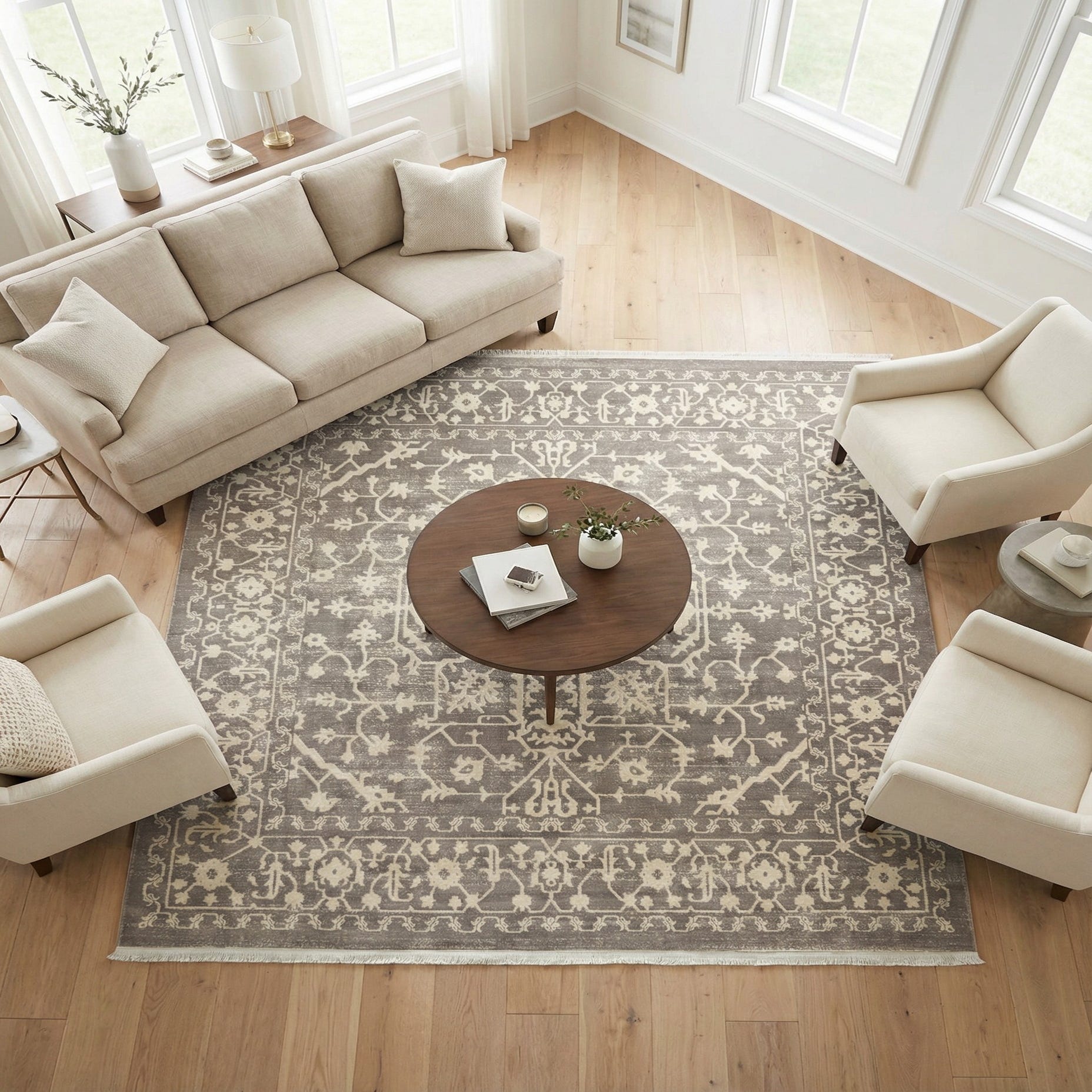 Primary color is Light Gray. Colors in this rug include: Light Gray, Ivory.