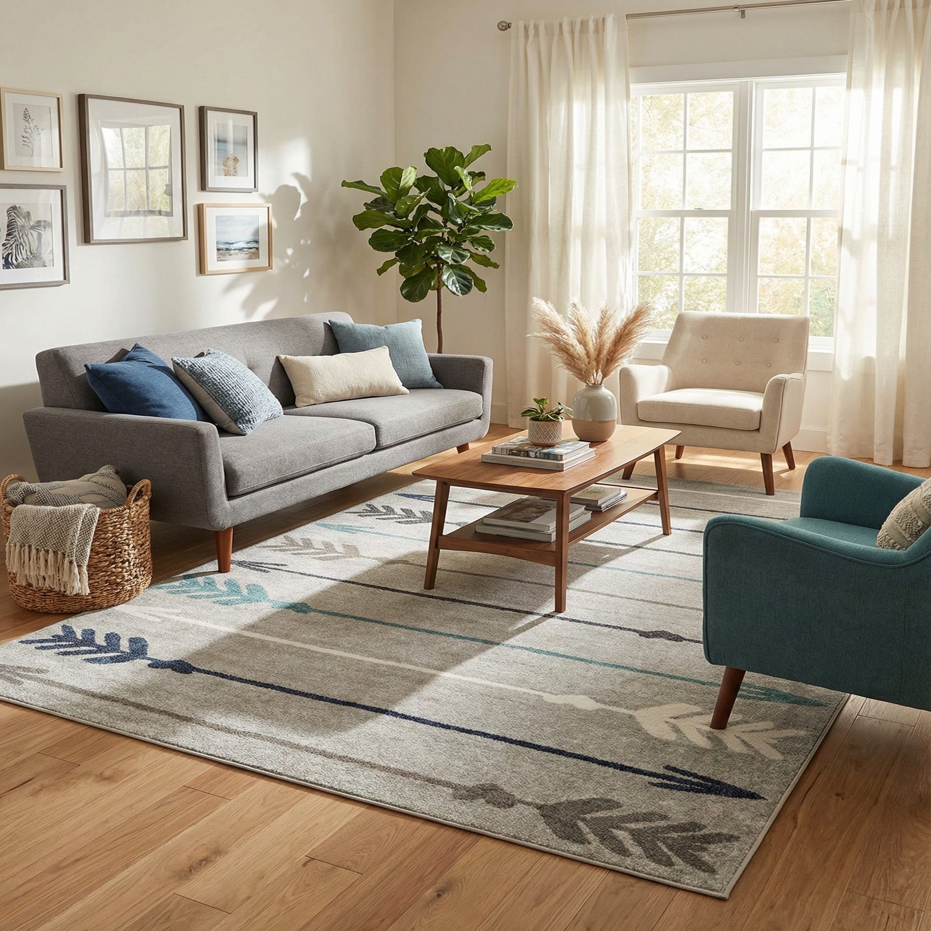 Primary color is Light Gray. Colors in this rug include: Light Gray, Black, Ivory, Navy Blue, Light Blue.