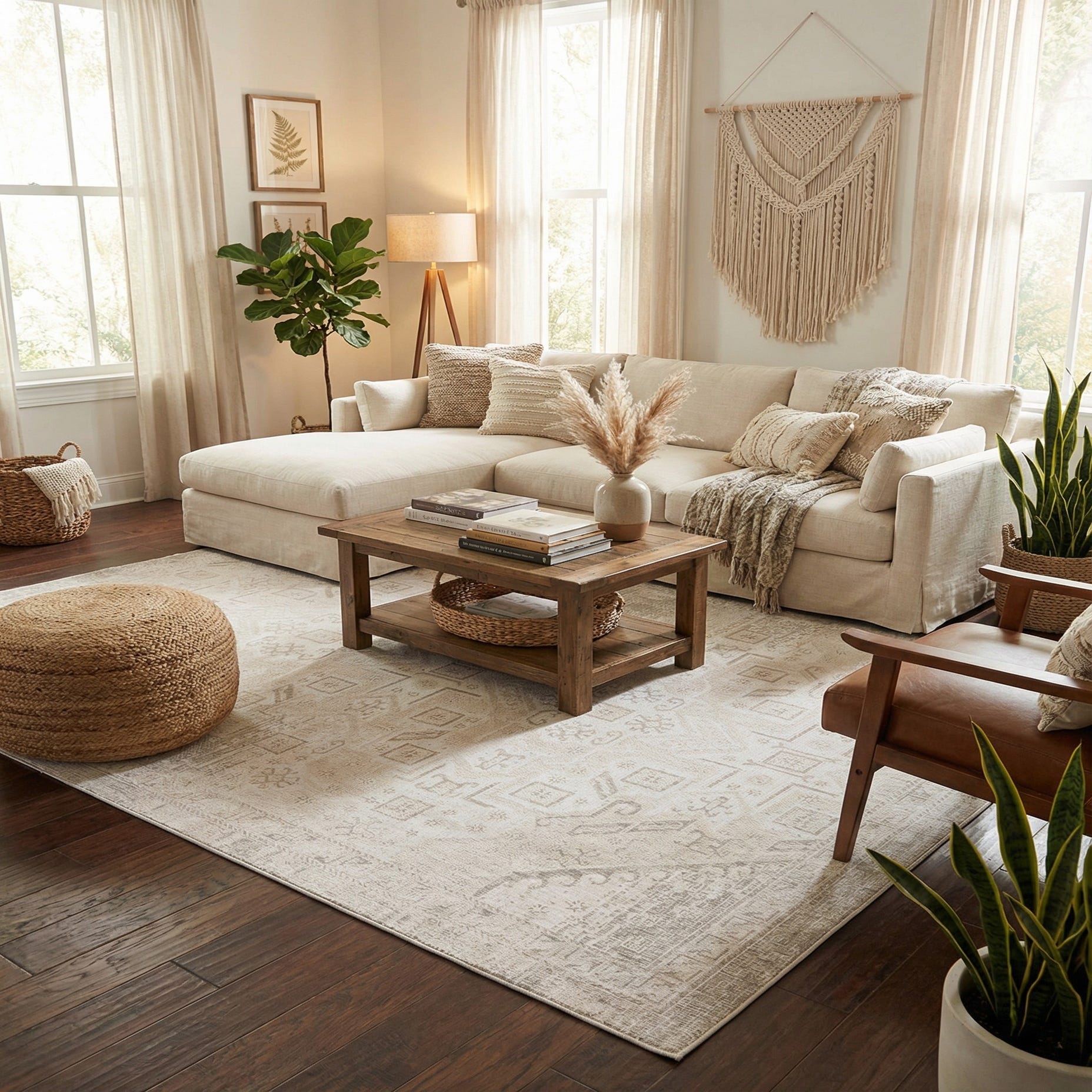 Primary color is Light Gray. Colors in this rug include: Light Gray, Ivory.