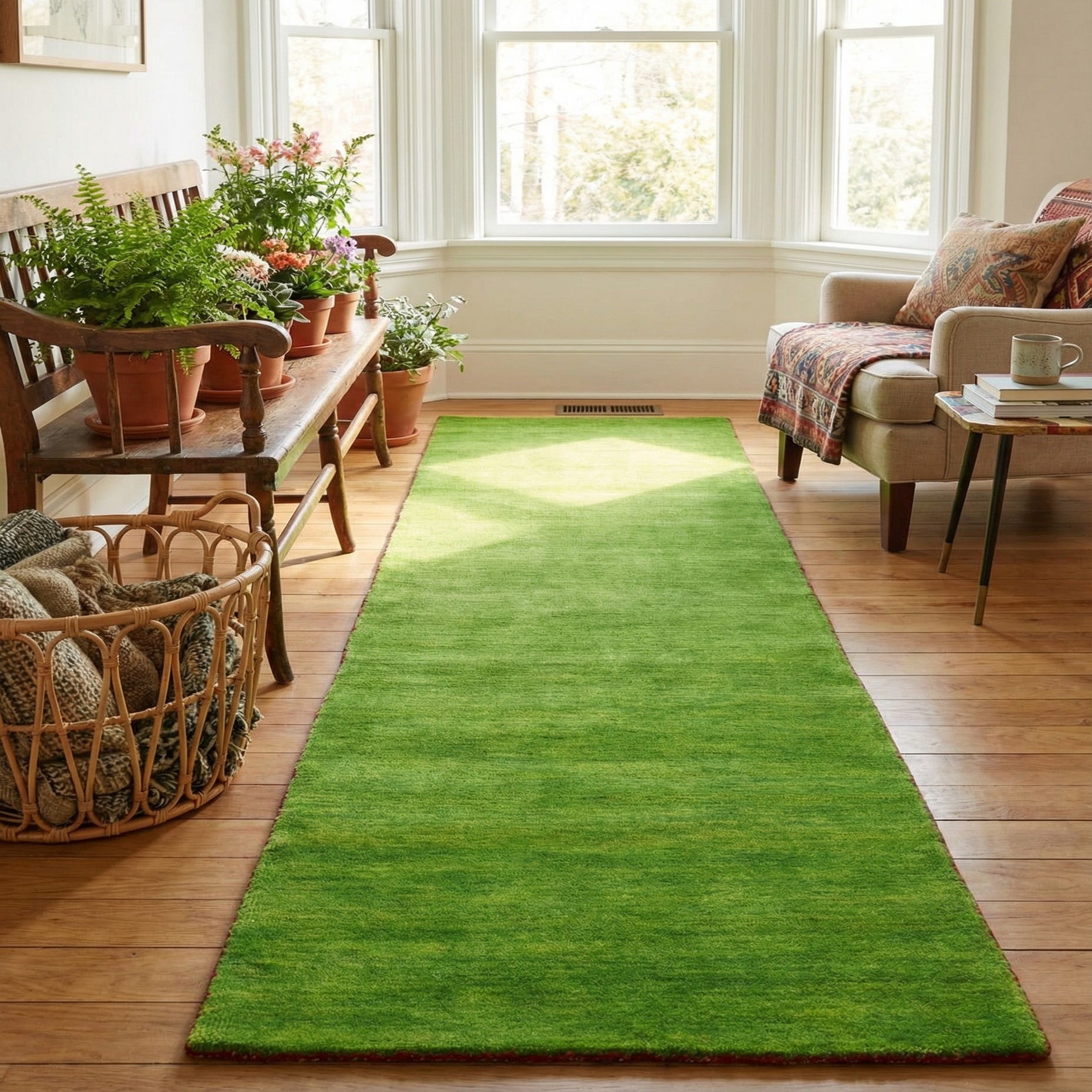 2' 7 x 9' 10 Hand Knotted Solid Gabbeh Wool Runner Rug