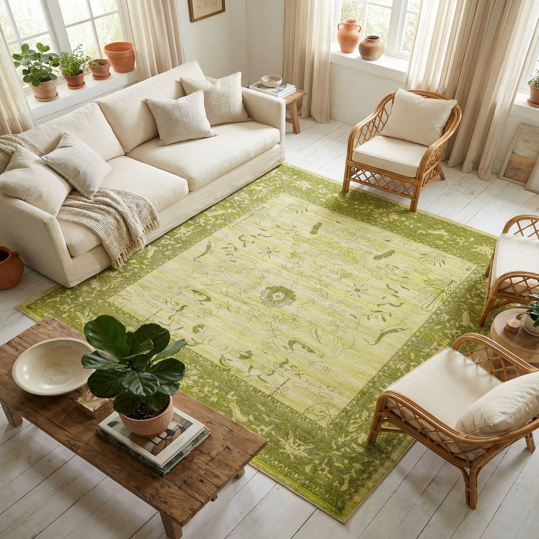 Primary color is Light Green. Colors in this rug include: Light Green, Green.