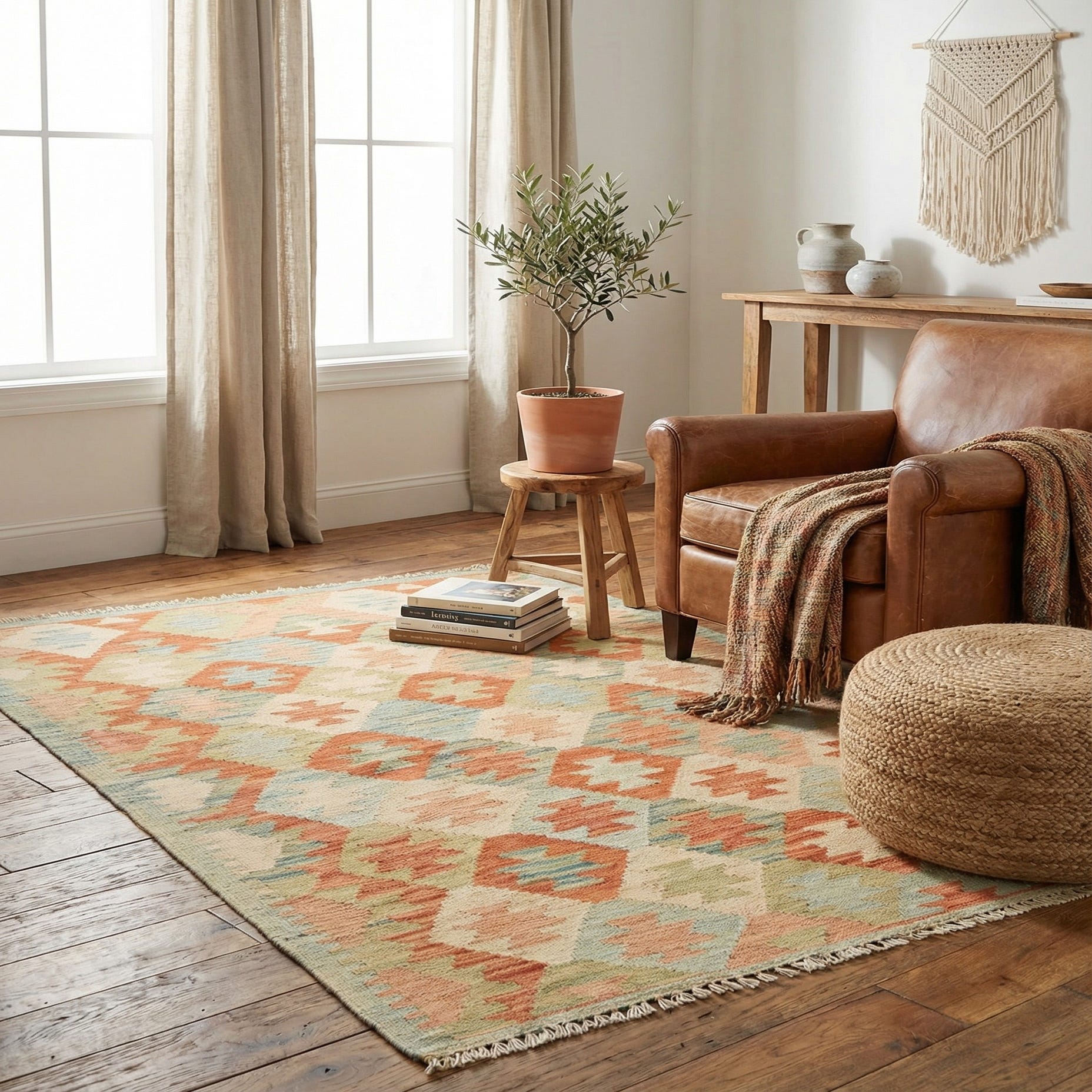 2' 7 x 4' Hand Woven Kilim Waziri Wool Rug