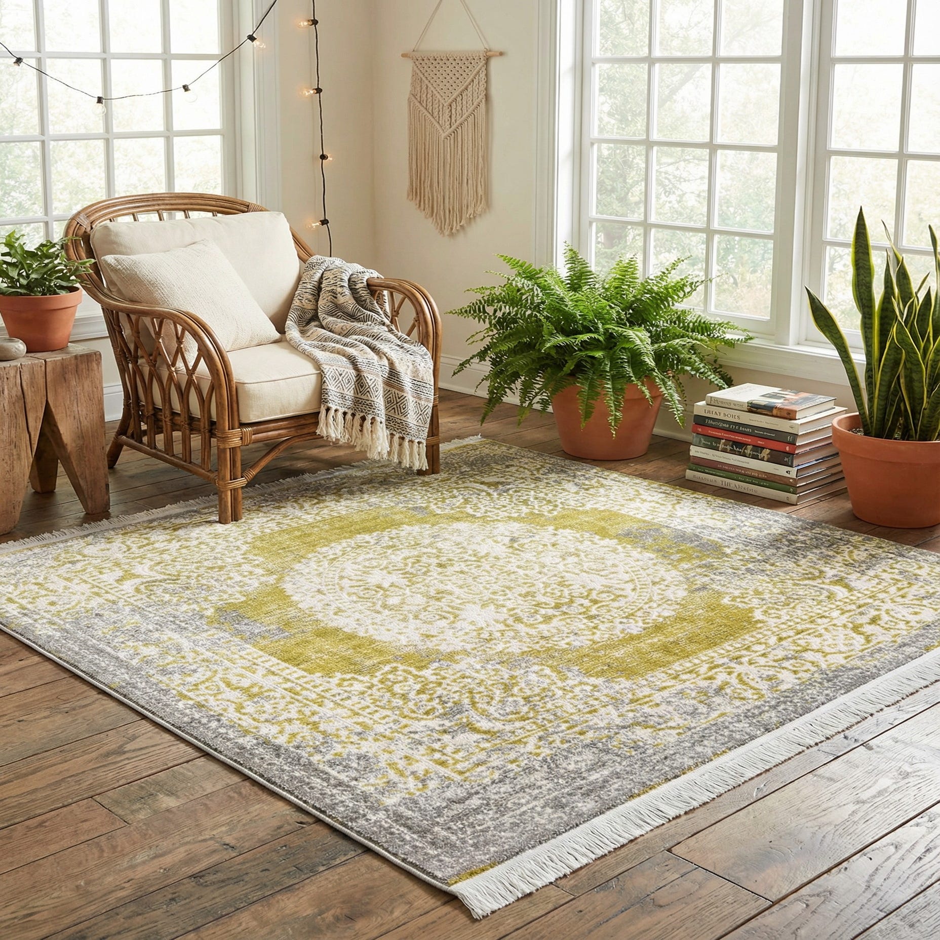 Primary color is Light Green. Colors in this rug include: Light Green, Gray, Ivory.