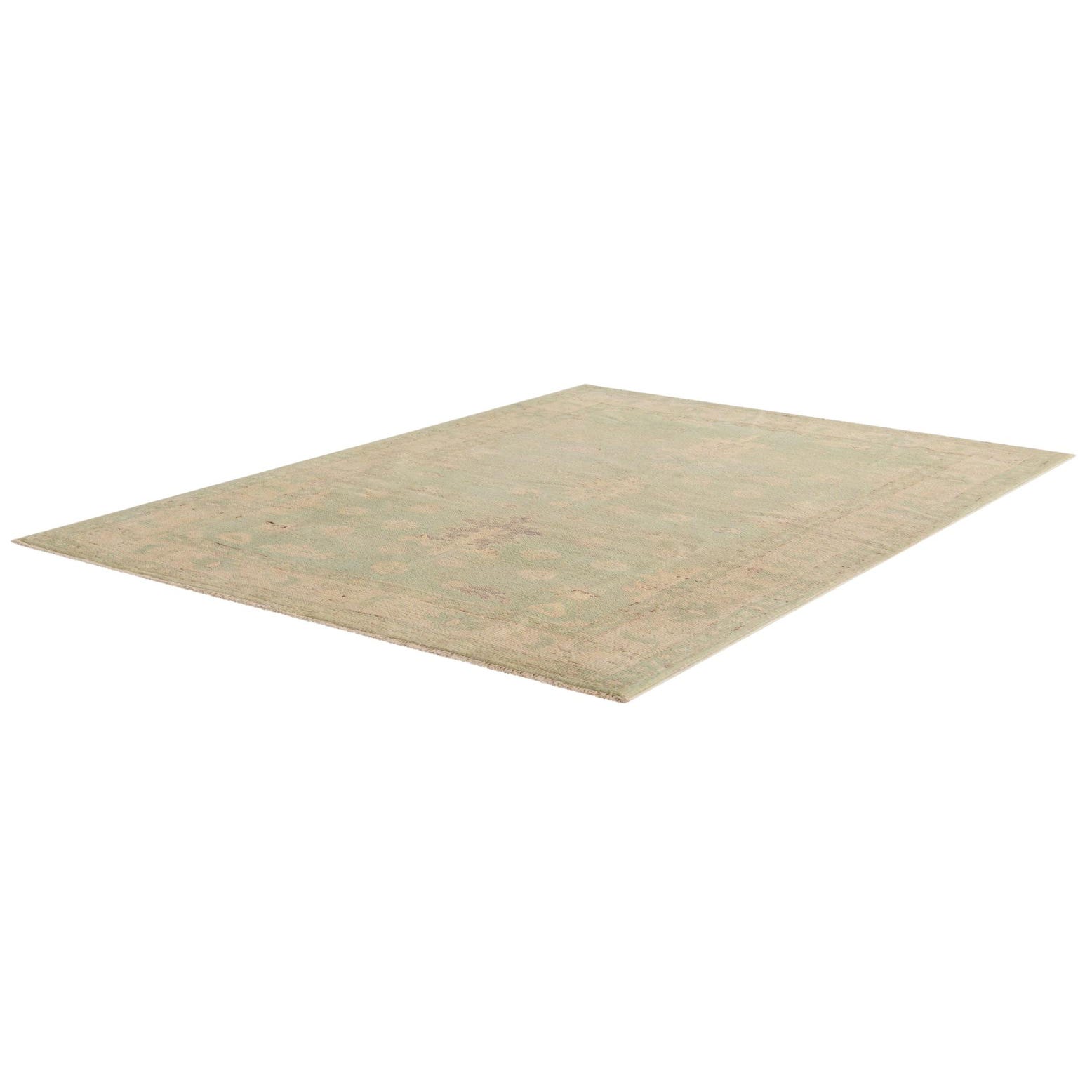 Primary color is Light Green. Colors in this rug include: Light Green, Brown, Cream, Gray.