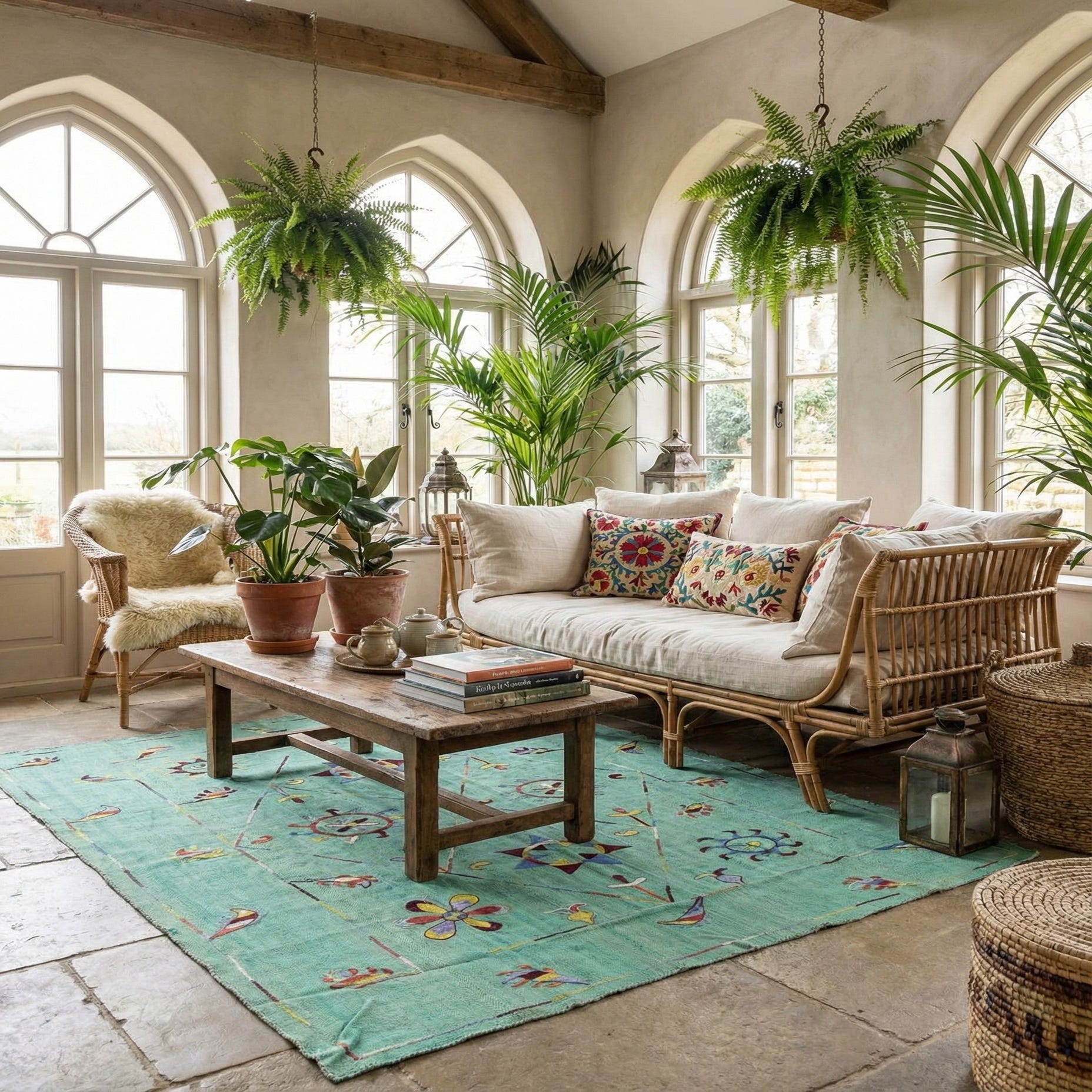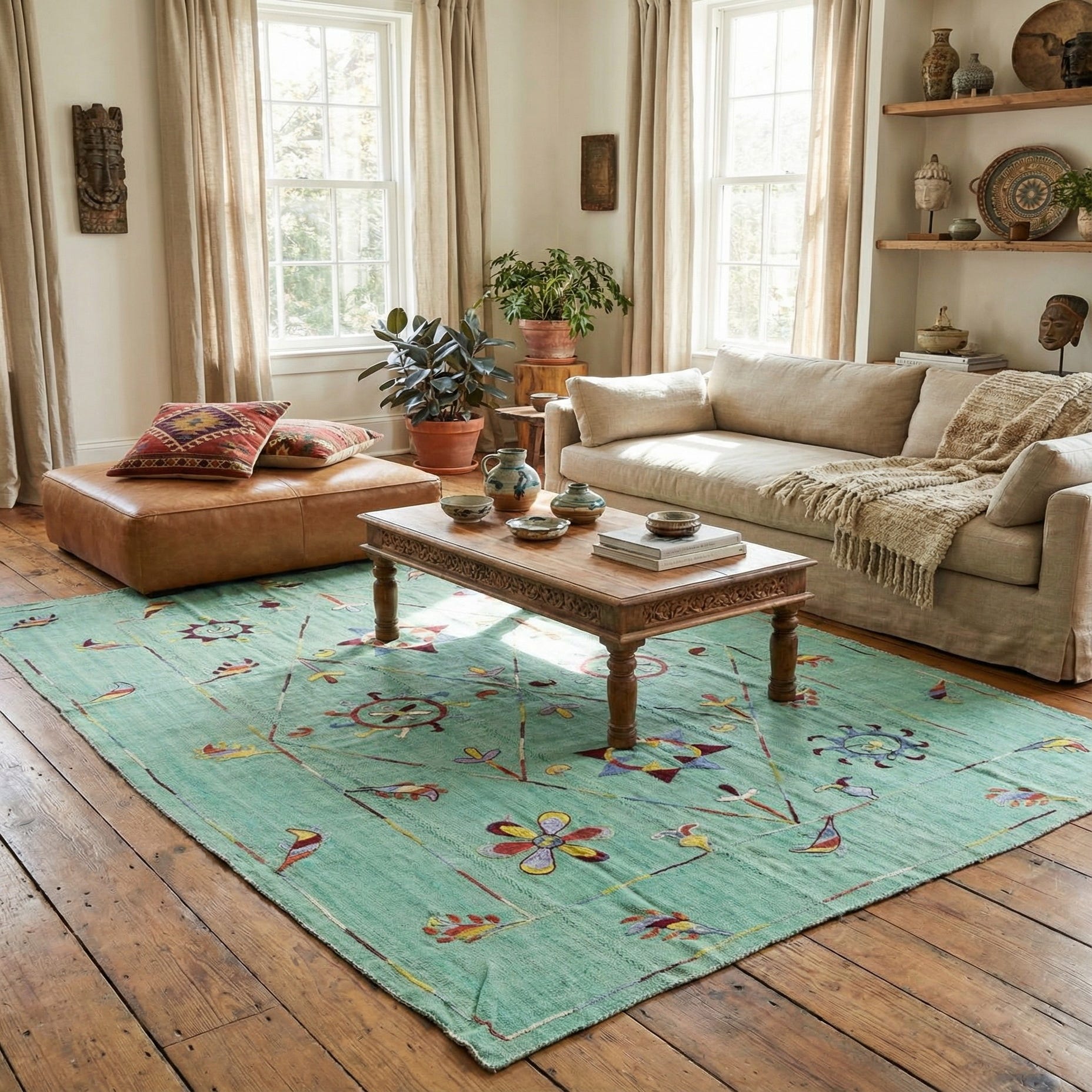 5' 8 x 7' 4 Hand Woven Kilim Suzani Wool Rug