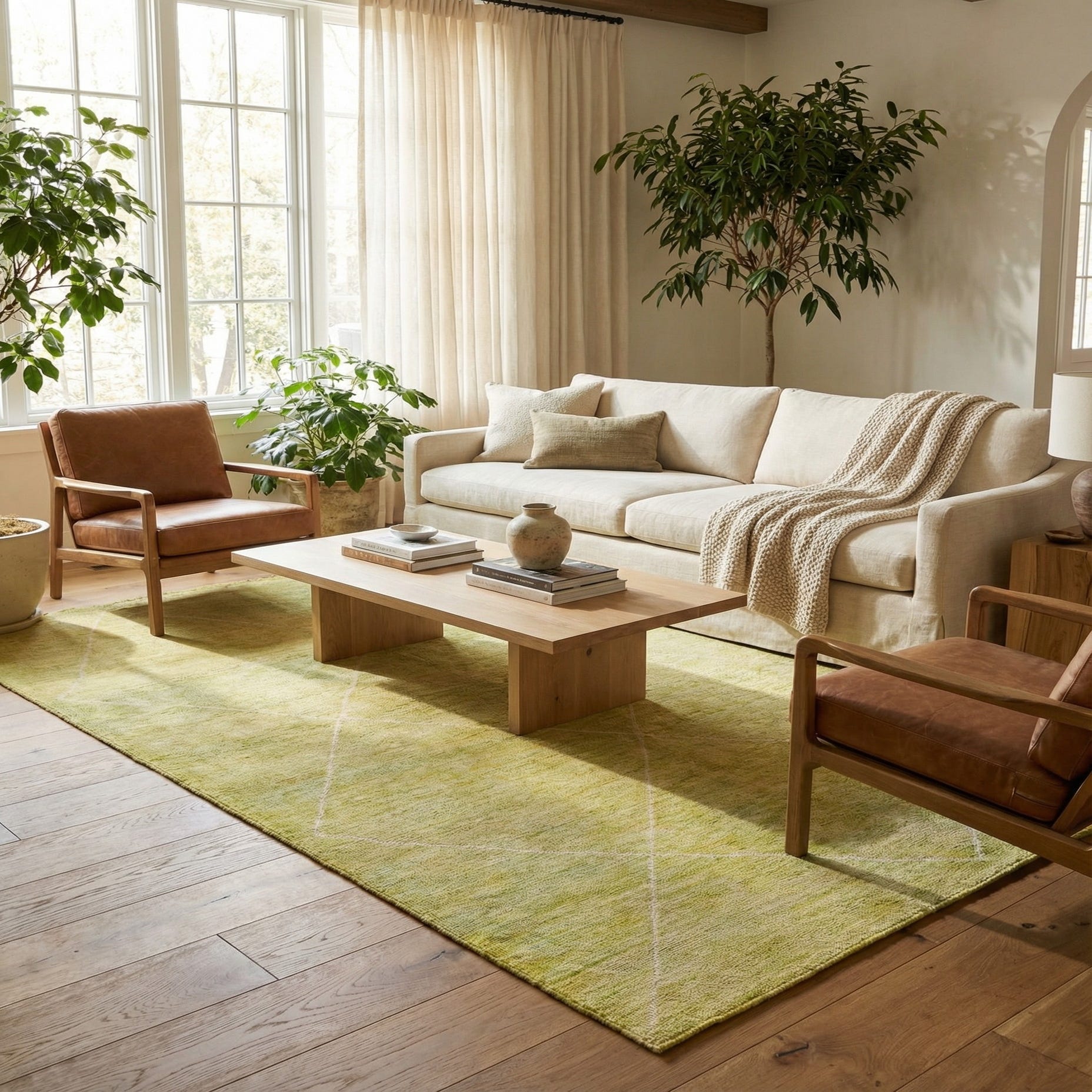Primary color is Light Green. Colors in this rug include: Light Green, Ivory.