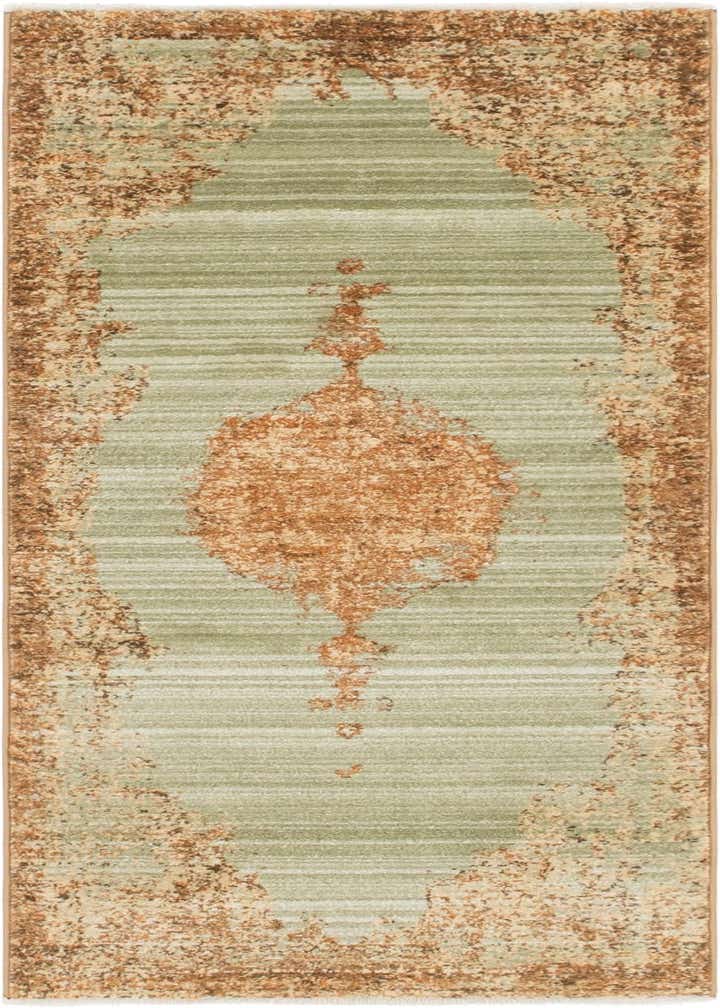 Primary color is Light Green. Colors in this rug include: Light Green, Brown, Cream, Ivory, Orange.