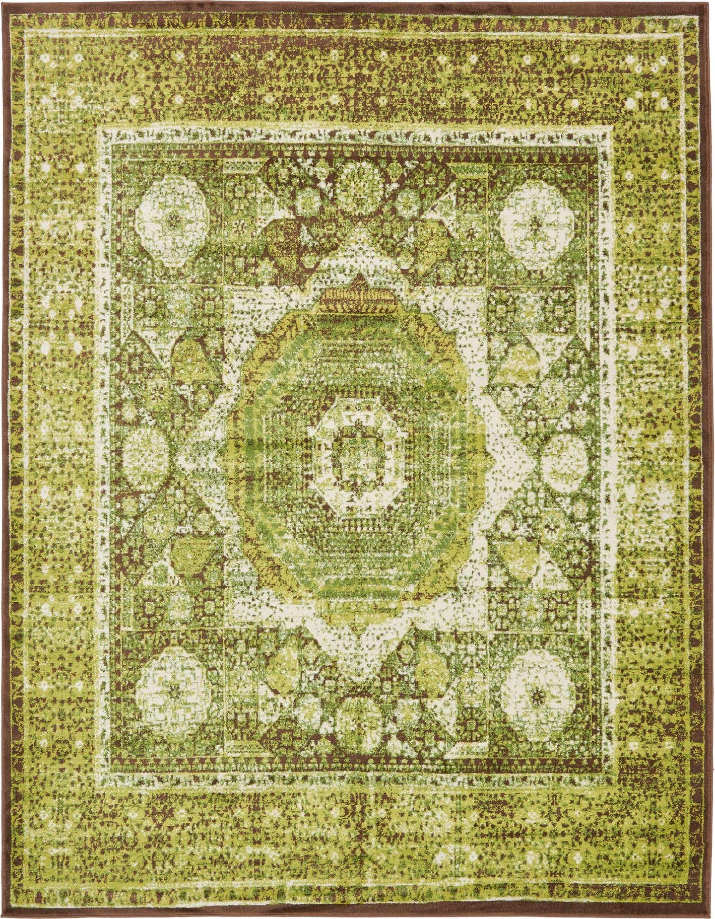 Primary color is Light Green. Colors in this rug include: Light Green, Brown, Green, Ivory.