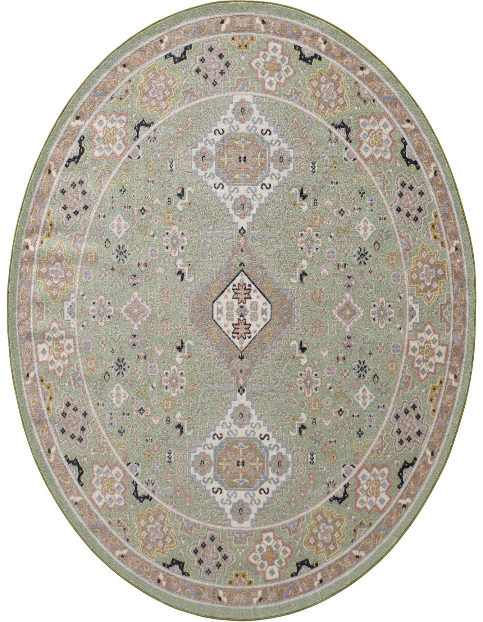 Primary color is Light Green. Colors in this rug include: Light Green, Beige, Black, Gray, Ivory, Pink, Light Blue.