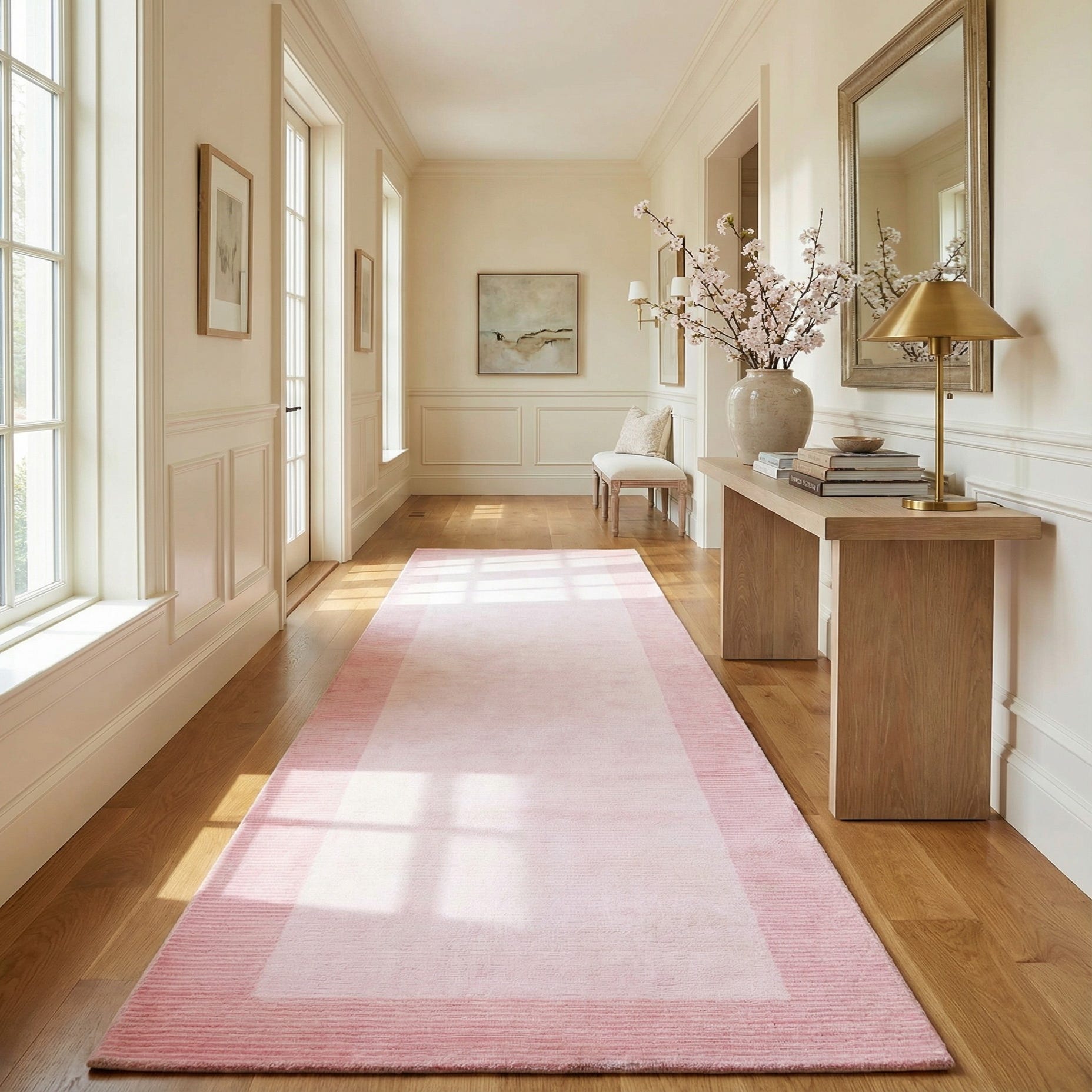 Primary color is Light Pink. Colors in this rug include: Light Pink, Pink.