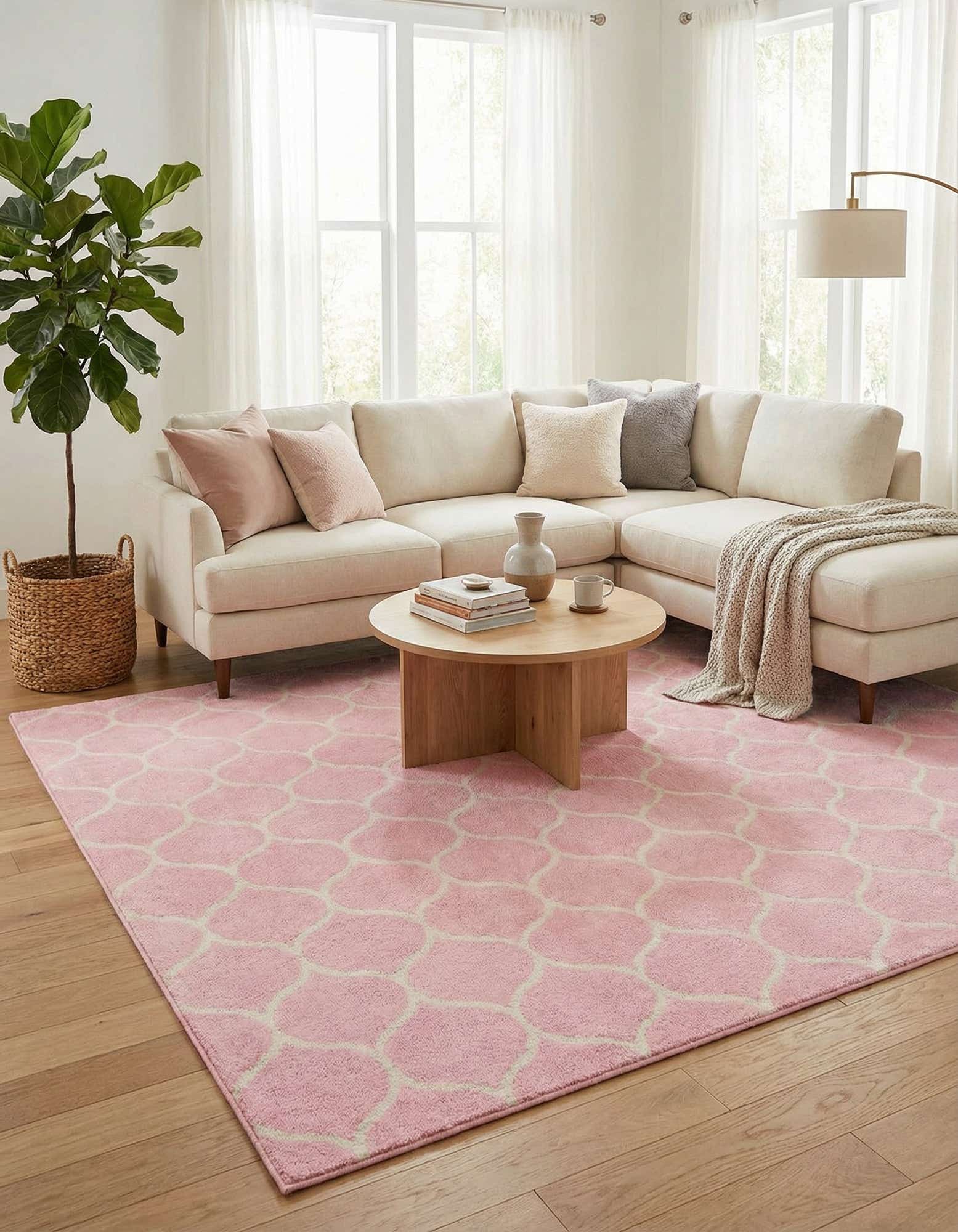 Primary color is Light Pink. Colors in this rug include: Light Pink, Ivory.