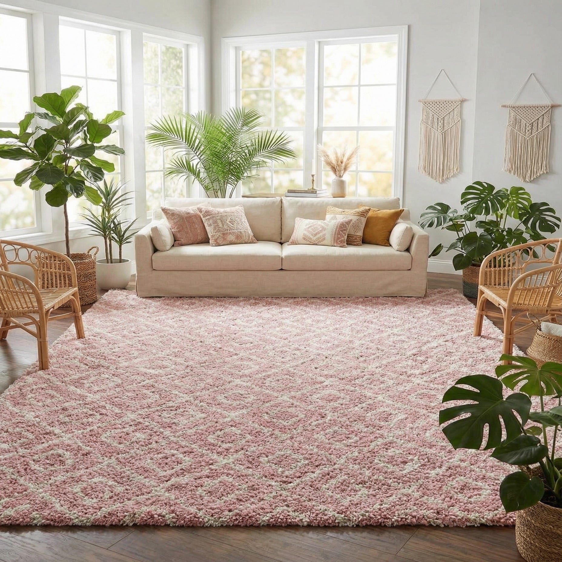 Primary color is Light Pink. Colors in this rug include: Light Pink, Ivory.