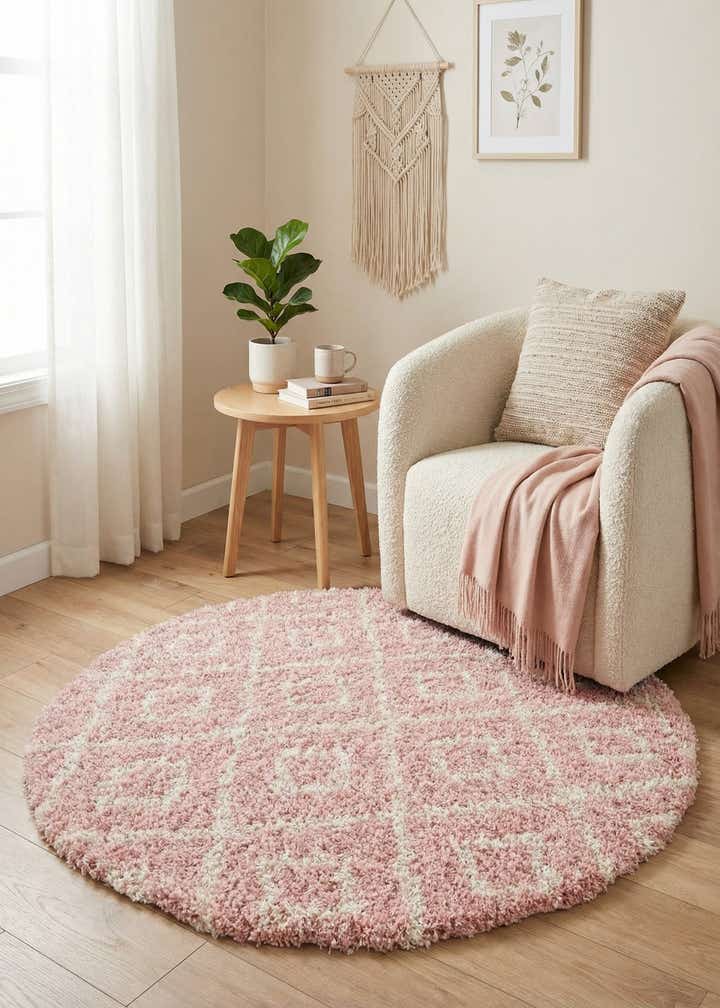 Primary color is Light Pink. Colors in this rug include: Light Pink, Ivory.