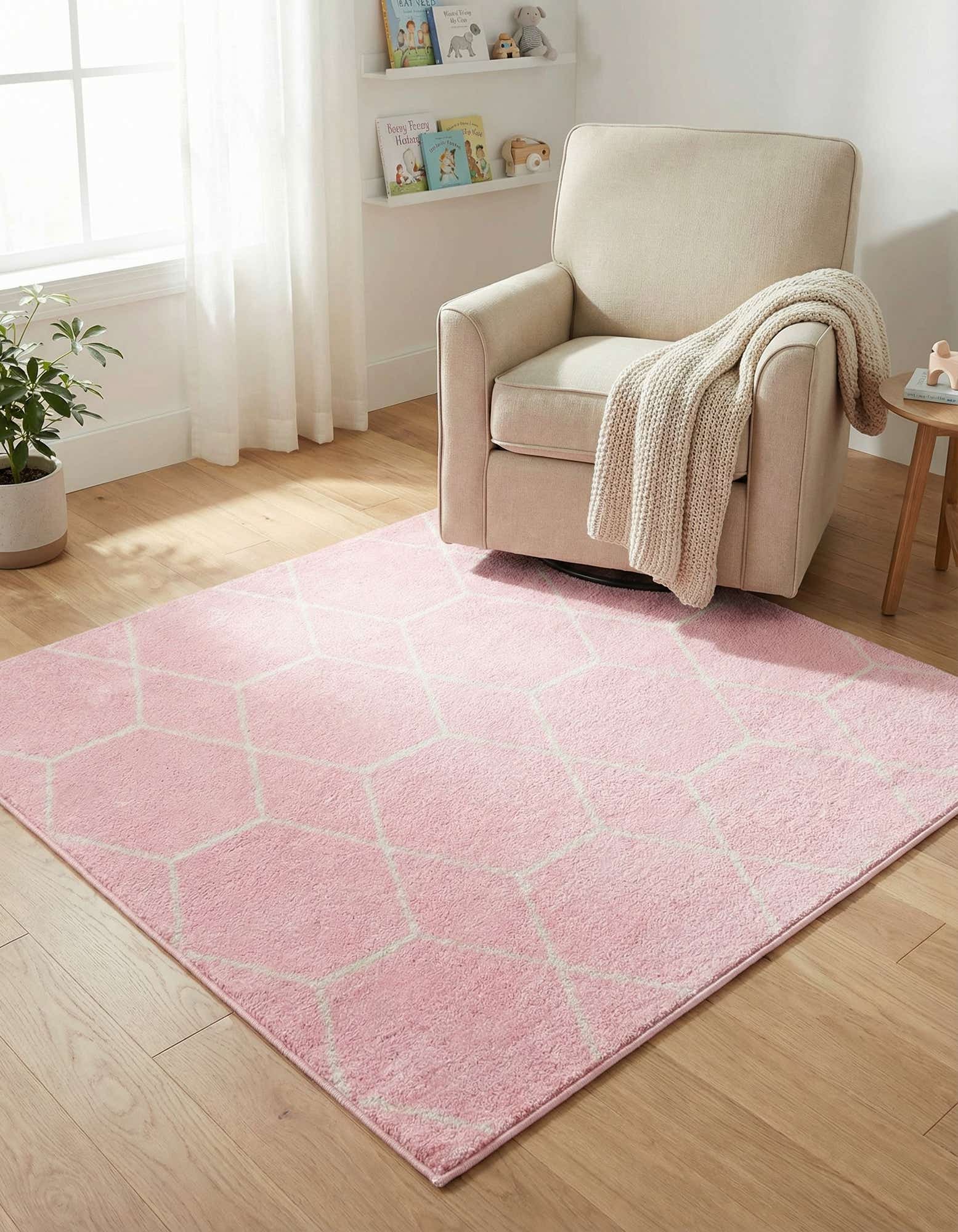 Primary color is Light Pink. Colors in this rug include: Light Pink, Ivory.