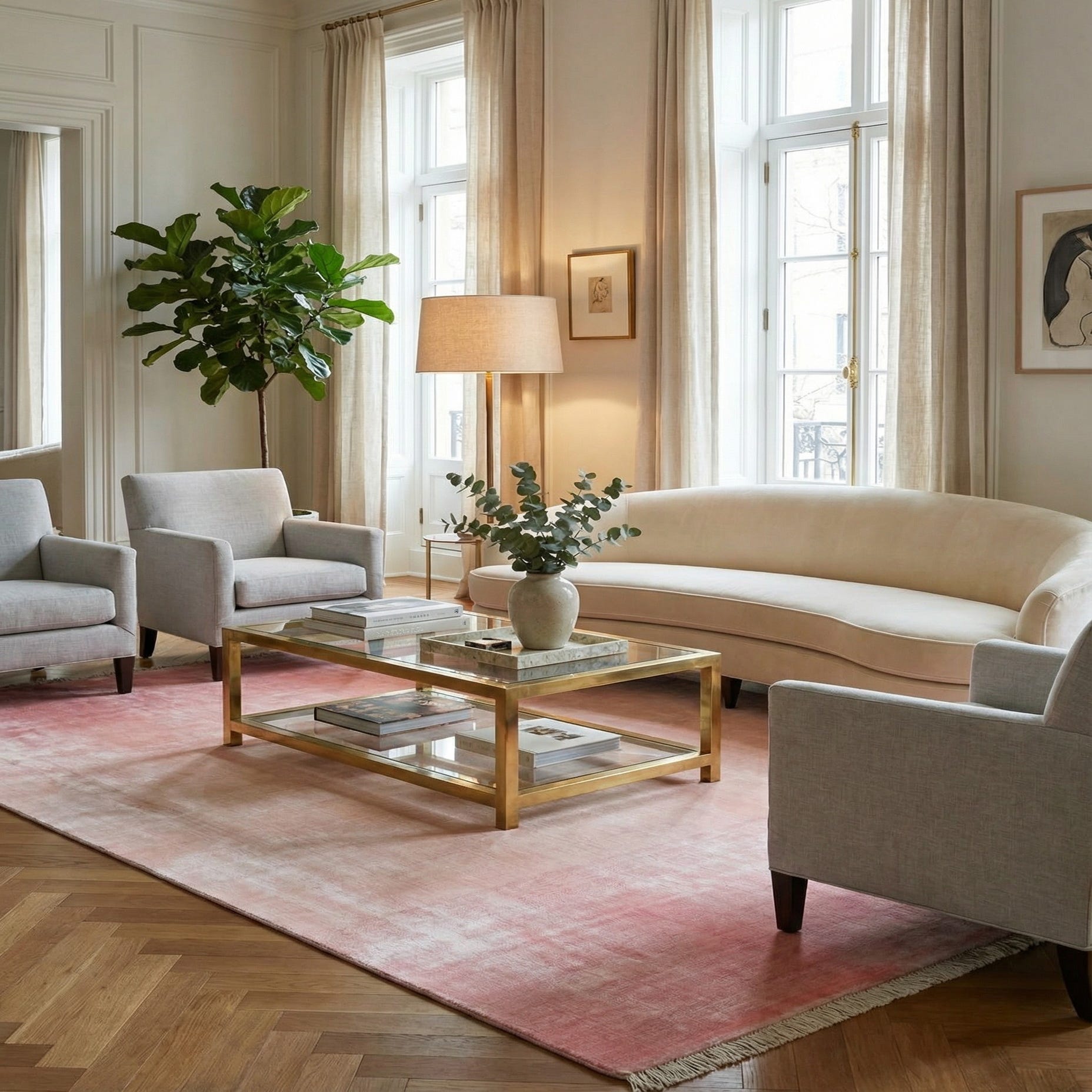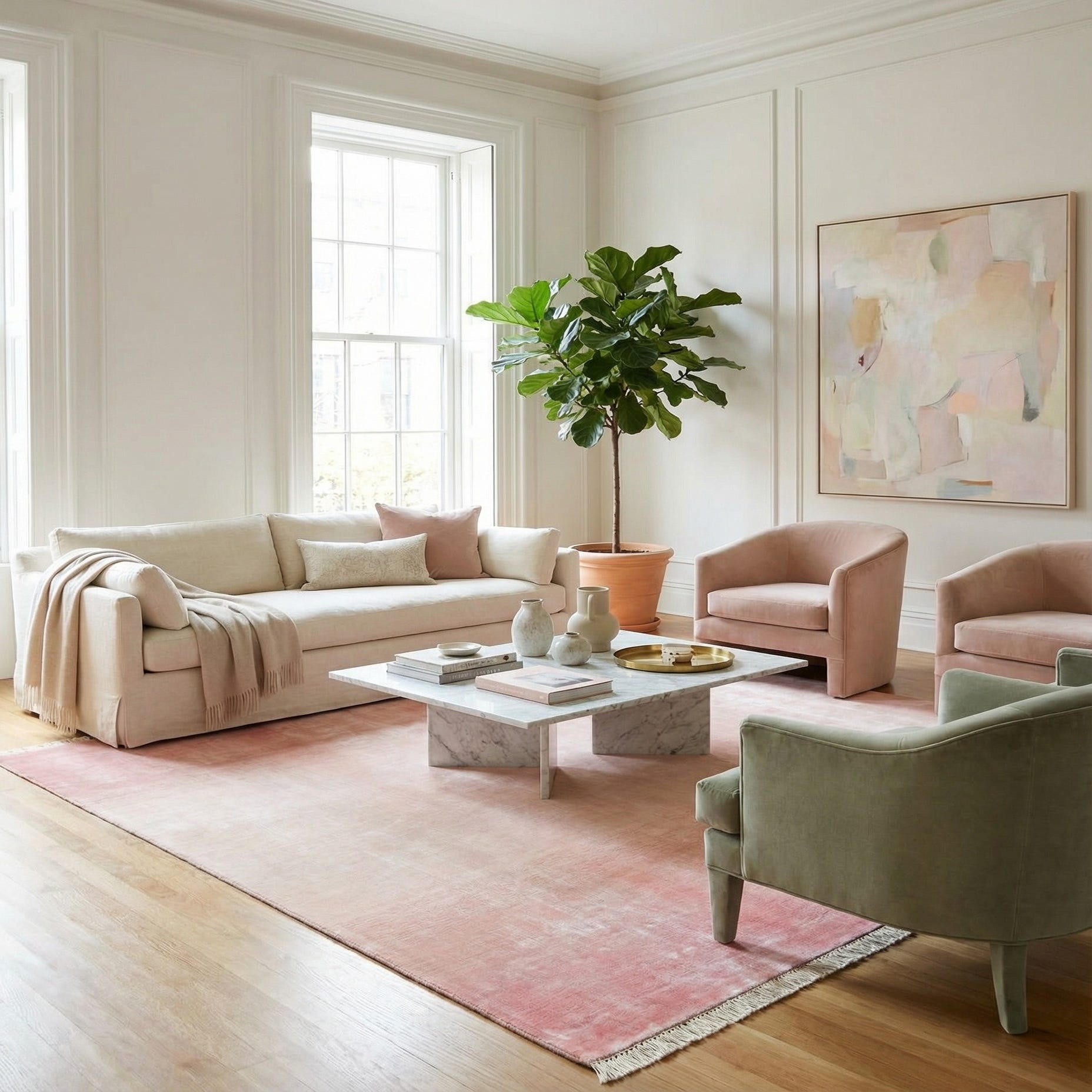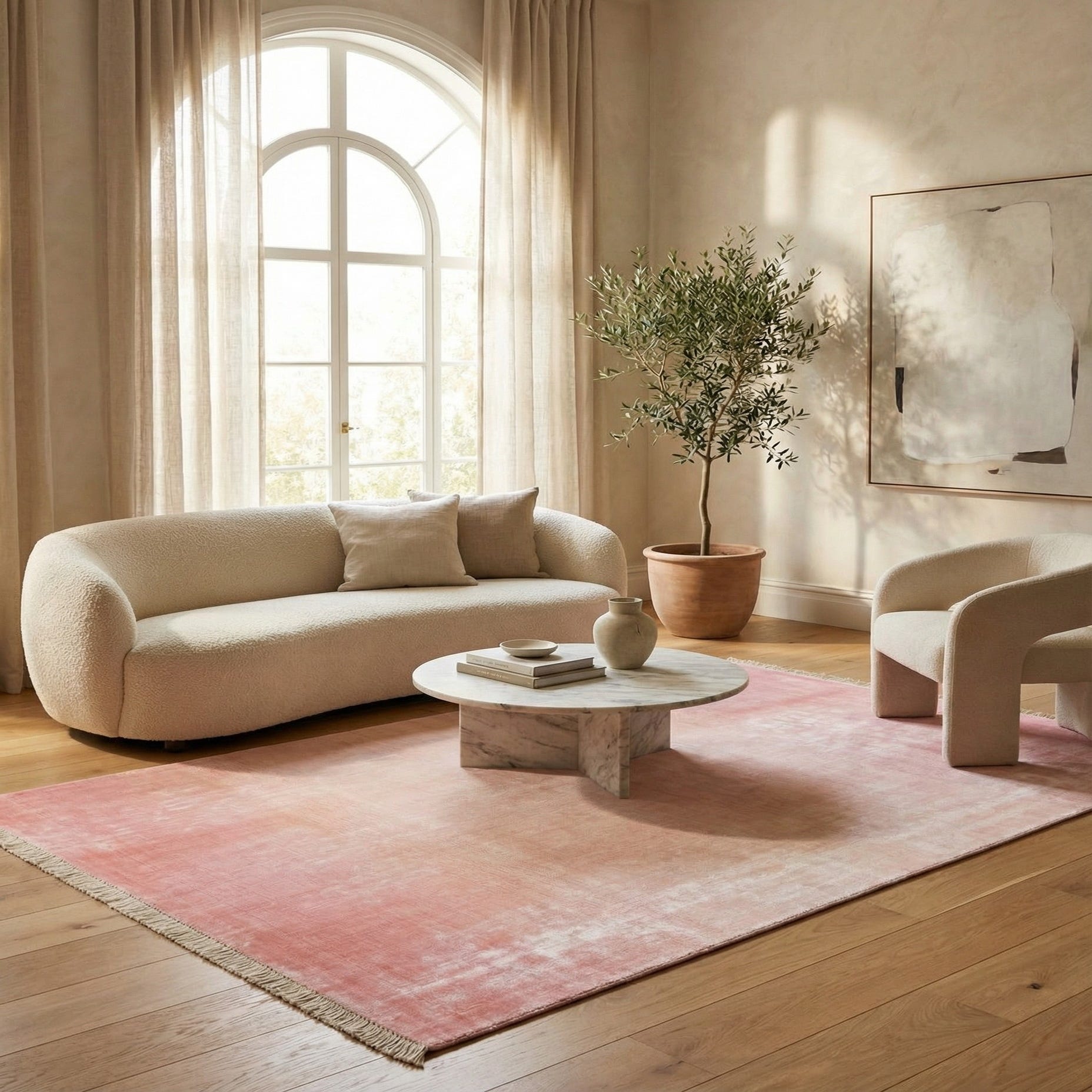 Primary color is Light Pink. Colors in this rug include: Light Pink, Light Salmon, Peach, Pink, Salmon.