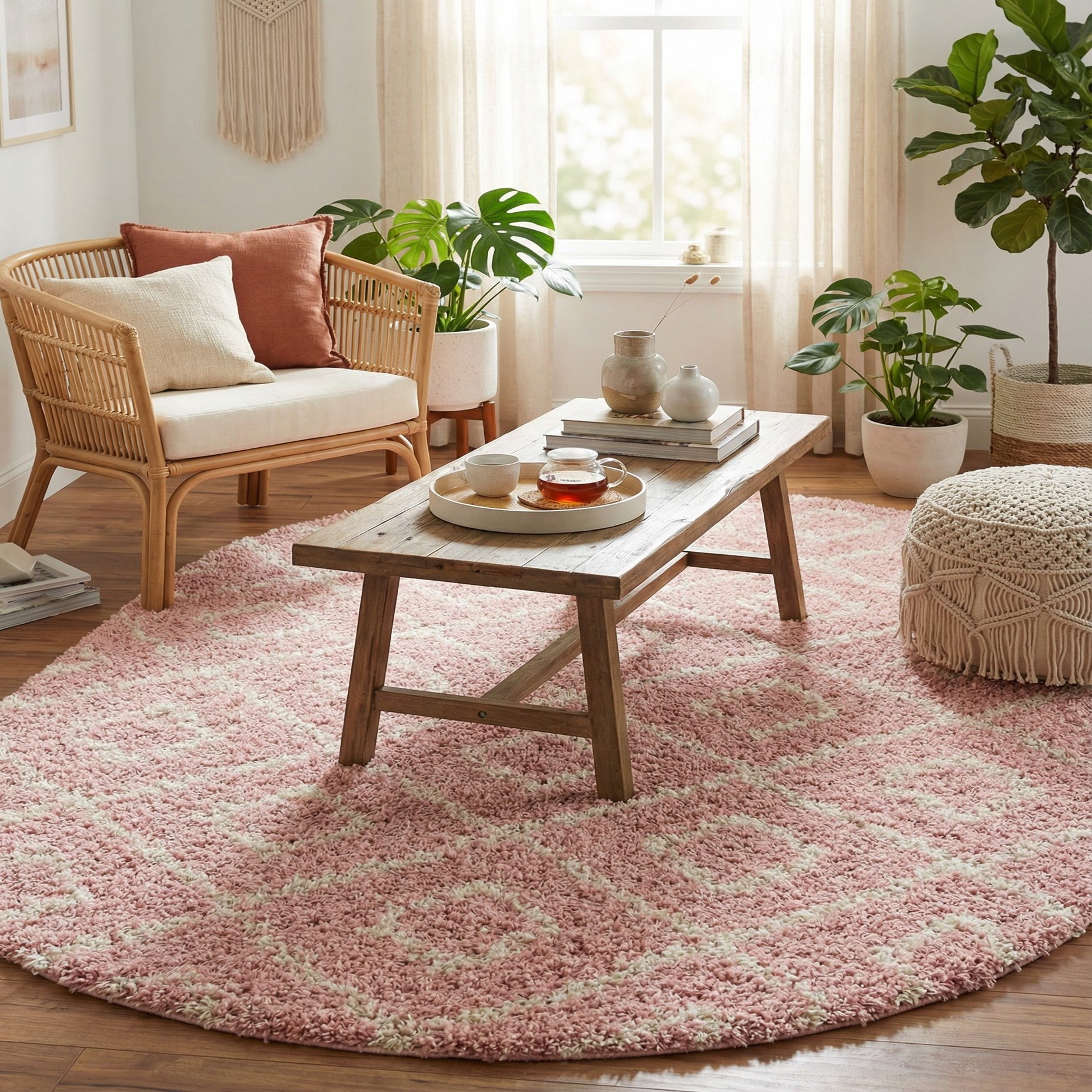Primary color is Light Pink. Colors in this rug include: Light Pink, Ivory.