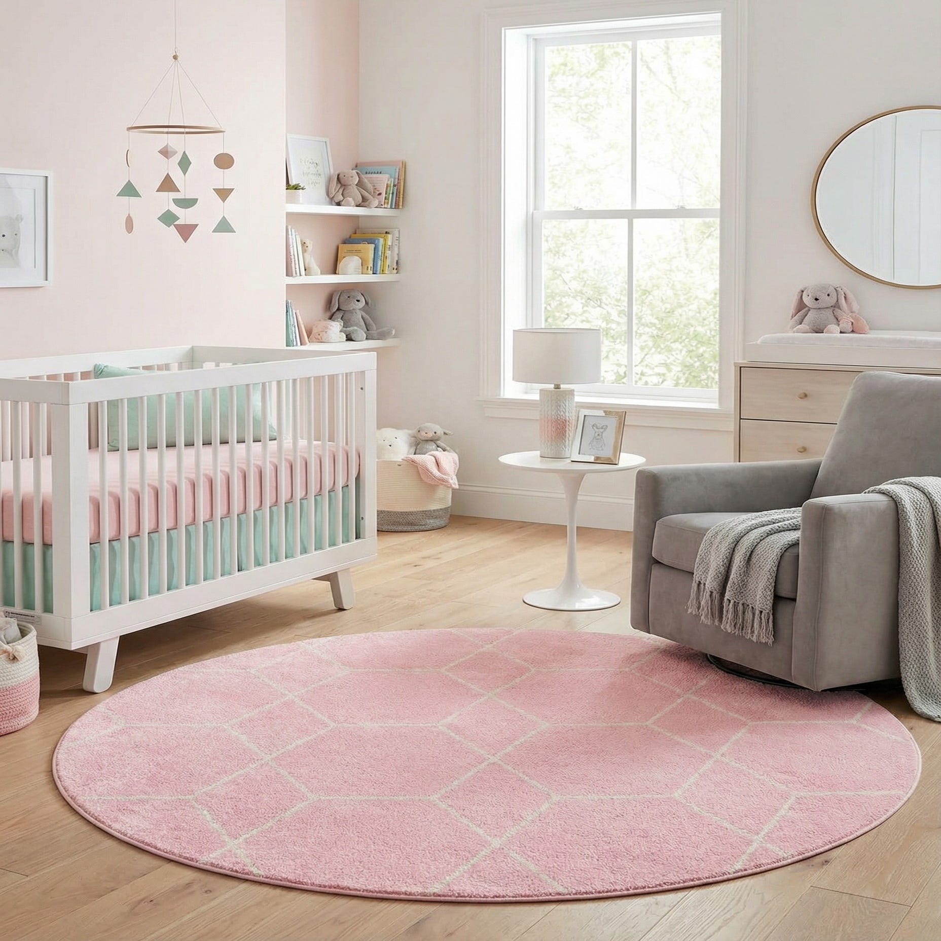 Primary color is Light Pink. Colors in this rug include: Light Pink, Ivory.
