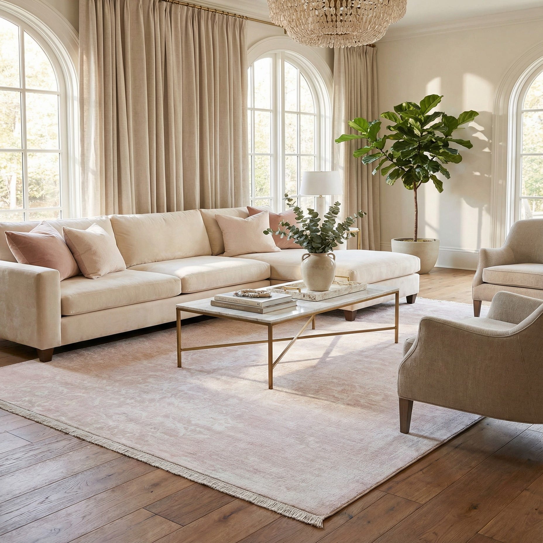Primary color is Light Pink. Colors in this rug include: Light Pink, Beige.