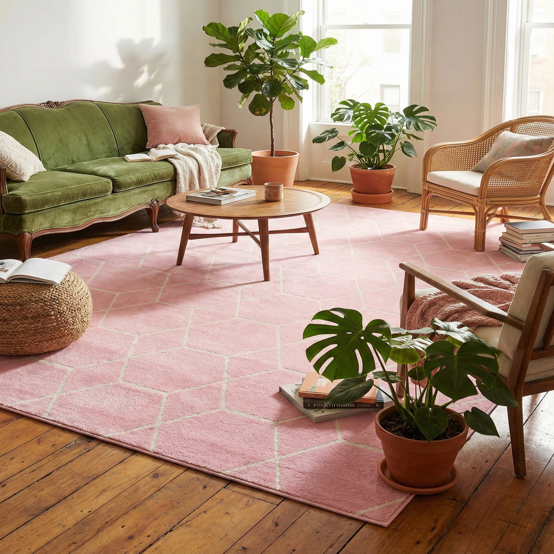 Primary color is Light Pink. Colors in this rug include: Light Pink, Ivory.