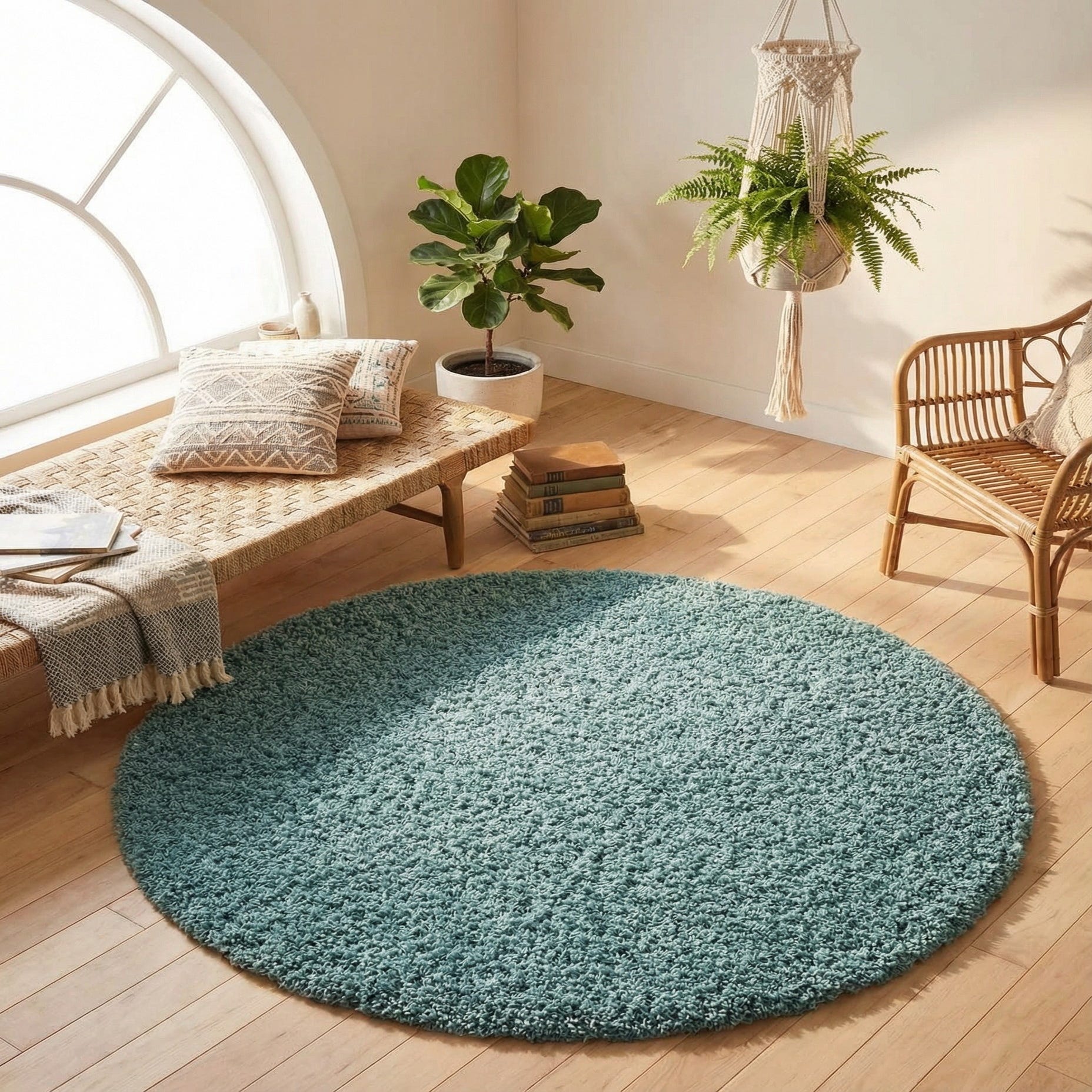 5' 3 x 5' 3 Solid Shag Round Rug
