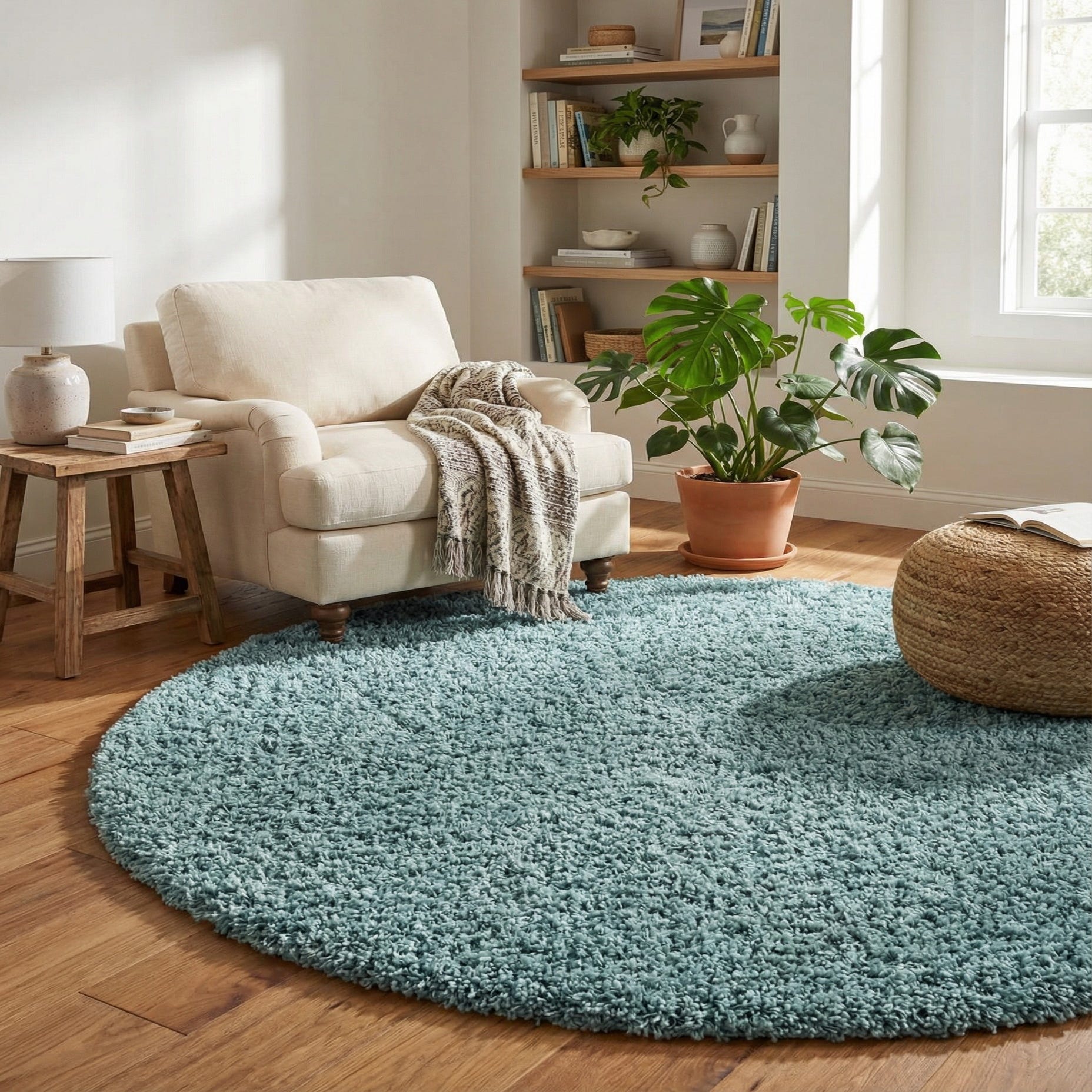 6' x 6' Solid Shag Round Rug
