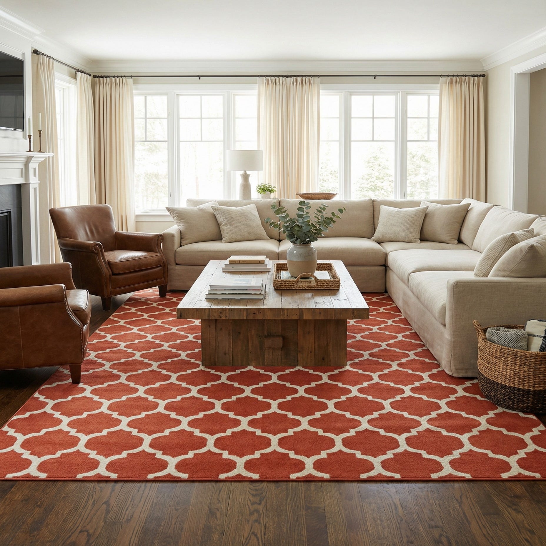 Primary color is Light Terracotta. Colors in this rug include: Light Terracotta, Beige, Rust Red.