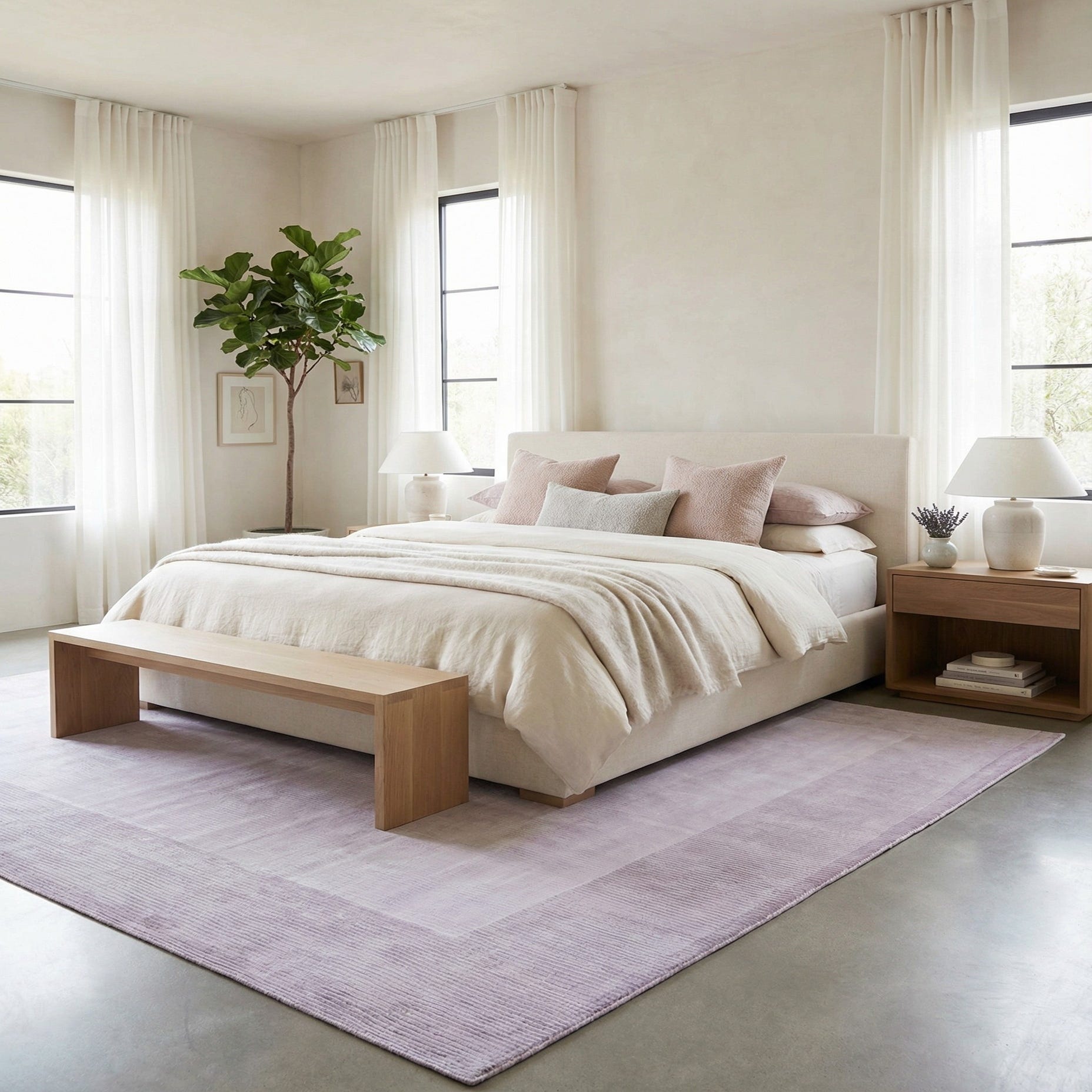 Primary color is Lilac. Colors in this rug include: Lilac, Purple.