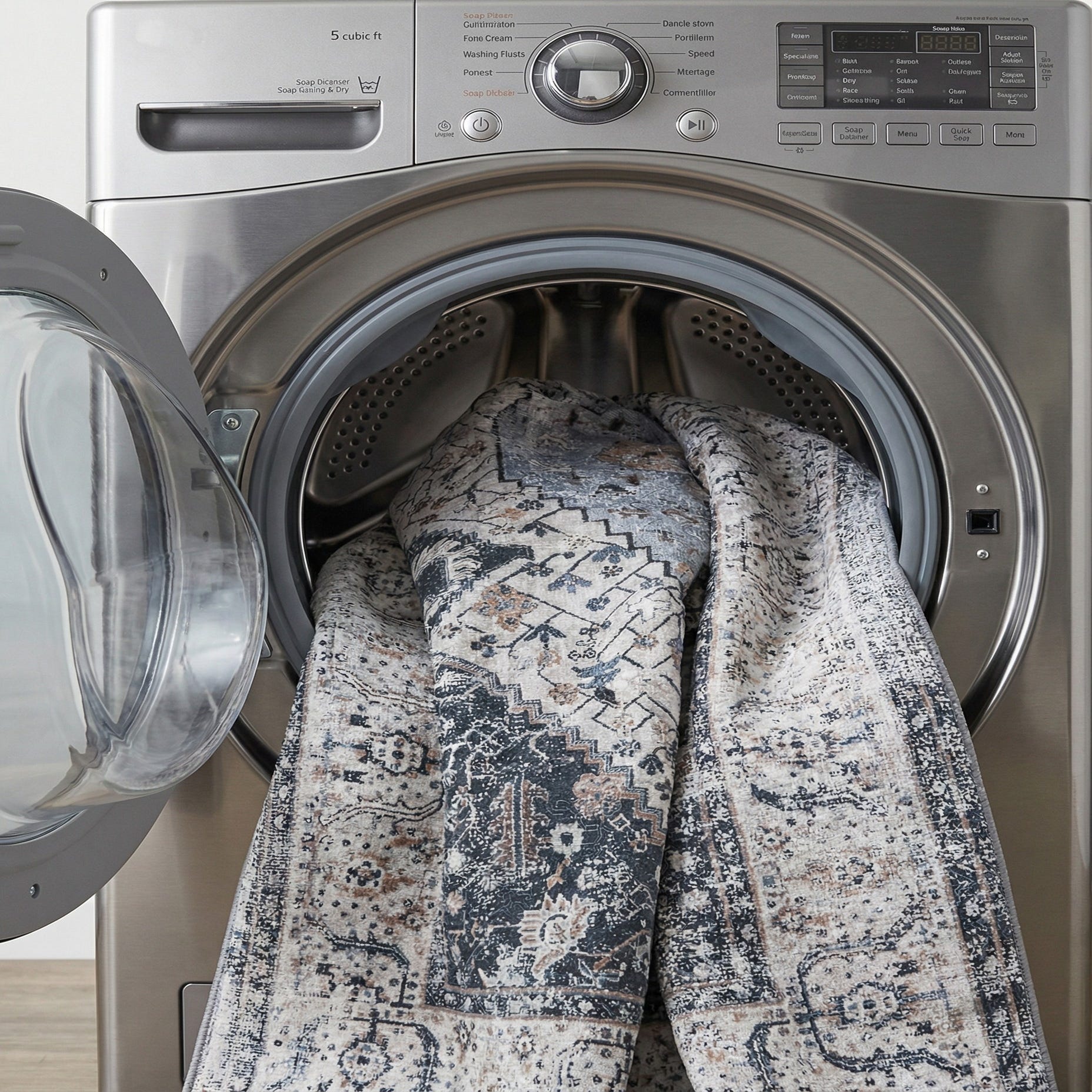 Primary color is Linen Charcoal. Colors in this rug include: Linen Charcoal, Beige, Light Blue, Light Brown, Gray, Ivory.